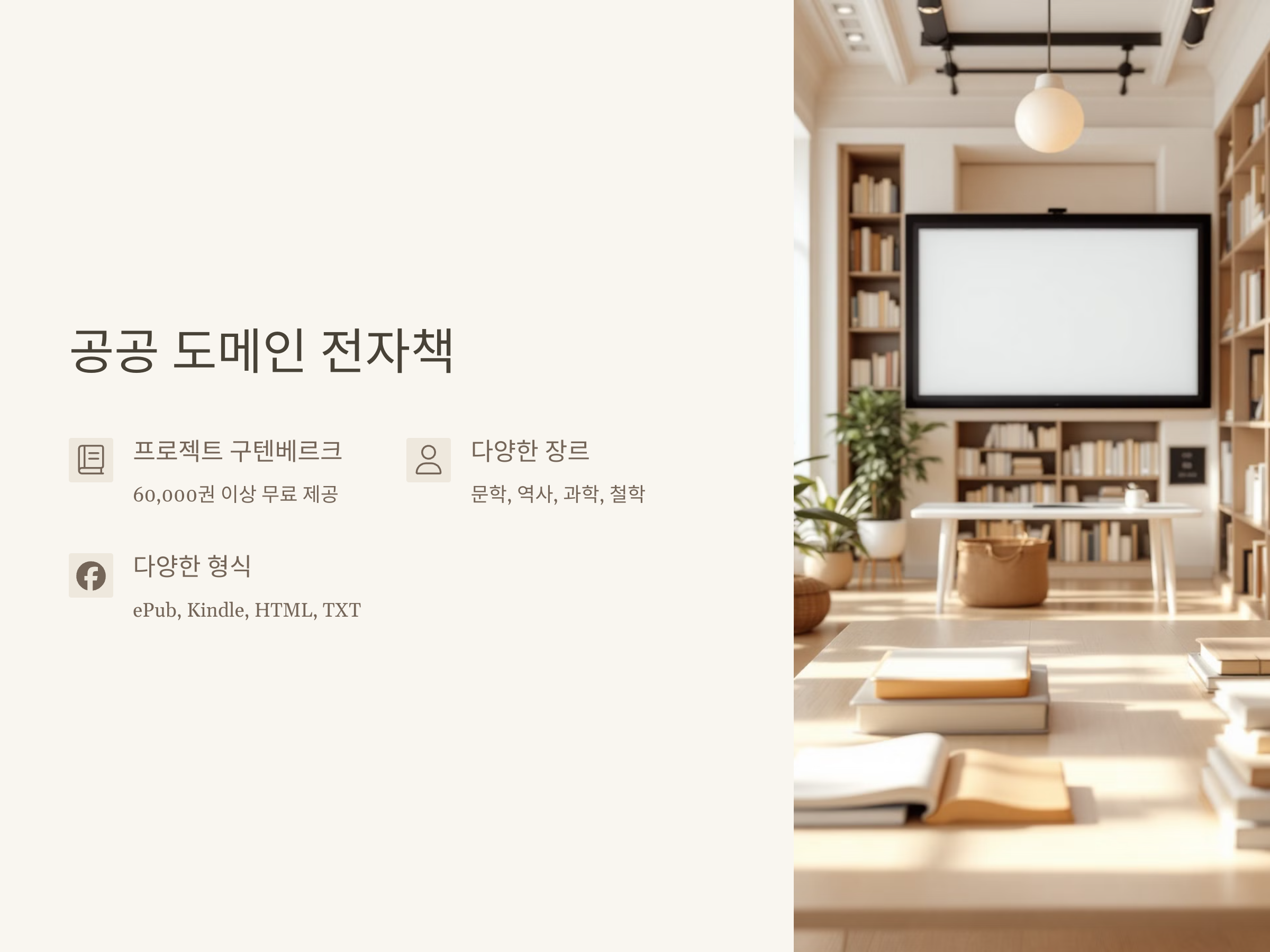 책을 읽는 것은 언제나 의미 있는 일입니다. 퇴직 후 새로운 도전을 시작하며, 무료로 전자책을 다운로드하여 다양한 분야의 책을 읽고, 새로운 지식을 쌓아보세요. 이 글에서 소개한 방법들을 활용해 더 나은 시간을 보낼 수 있을 것입니다.