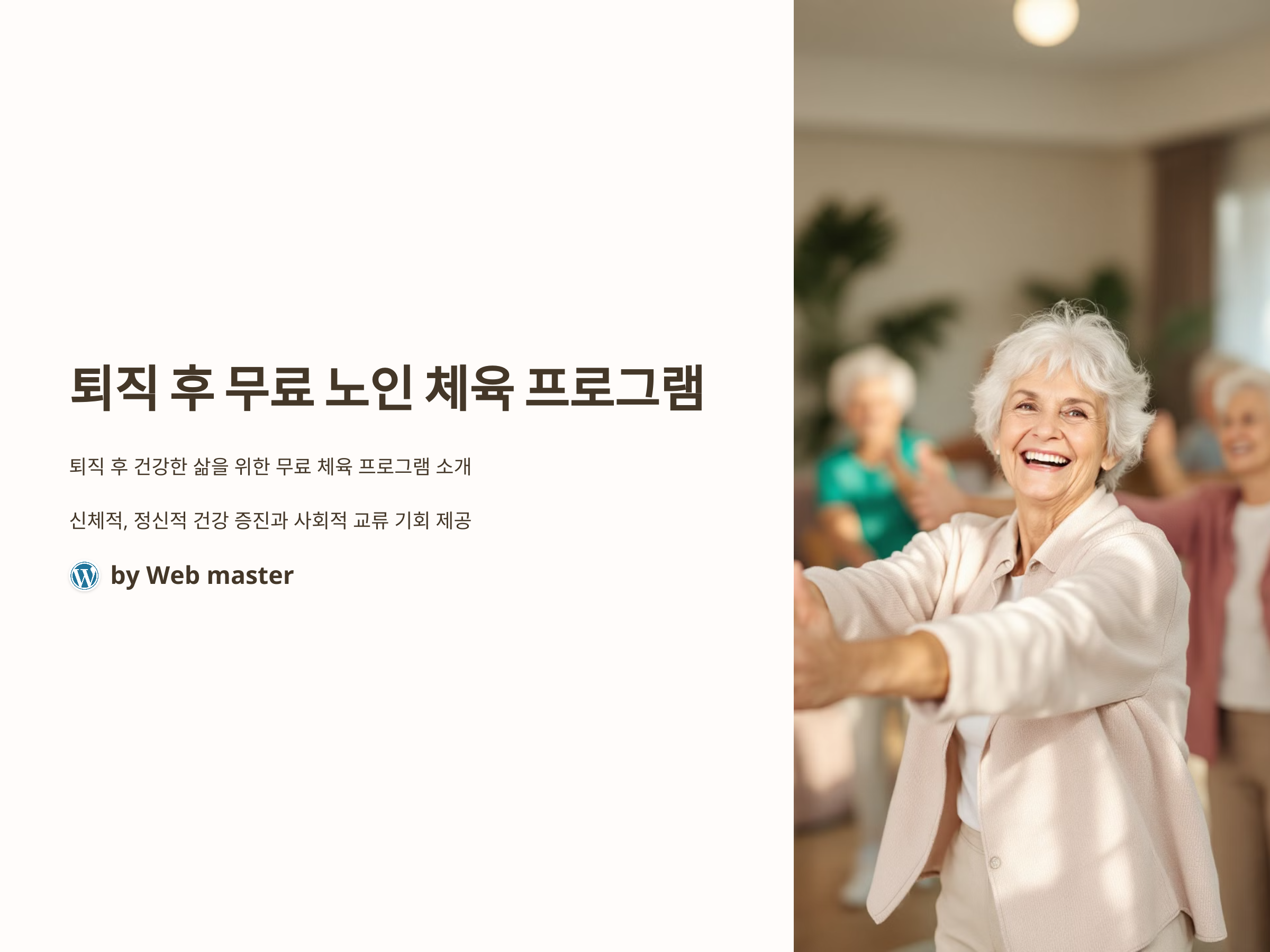 퇴직 후 건강을 유지하는 데 있어 체육 프로그램에 참여하는 것은 매우 중요한 선택입니다. 다양한 무료 노인 체육 프로그램을 통해 신체 건강뿐만 아니라 정신 건강과 사회적 유대감도 증진시킬 수 있습니다. 운동은 노년기의 삶의 질을 향상시키는 중요한 요소이므로, 자신의 체력에 맞는 프로그램을 선택하여 꾸준히 참여하는 것이 좋습니다.
