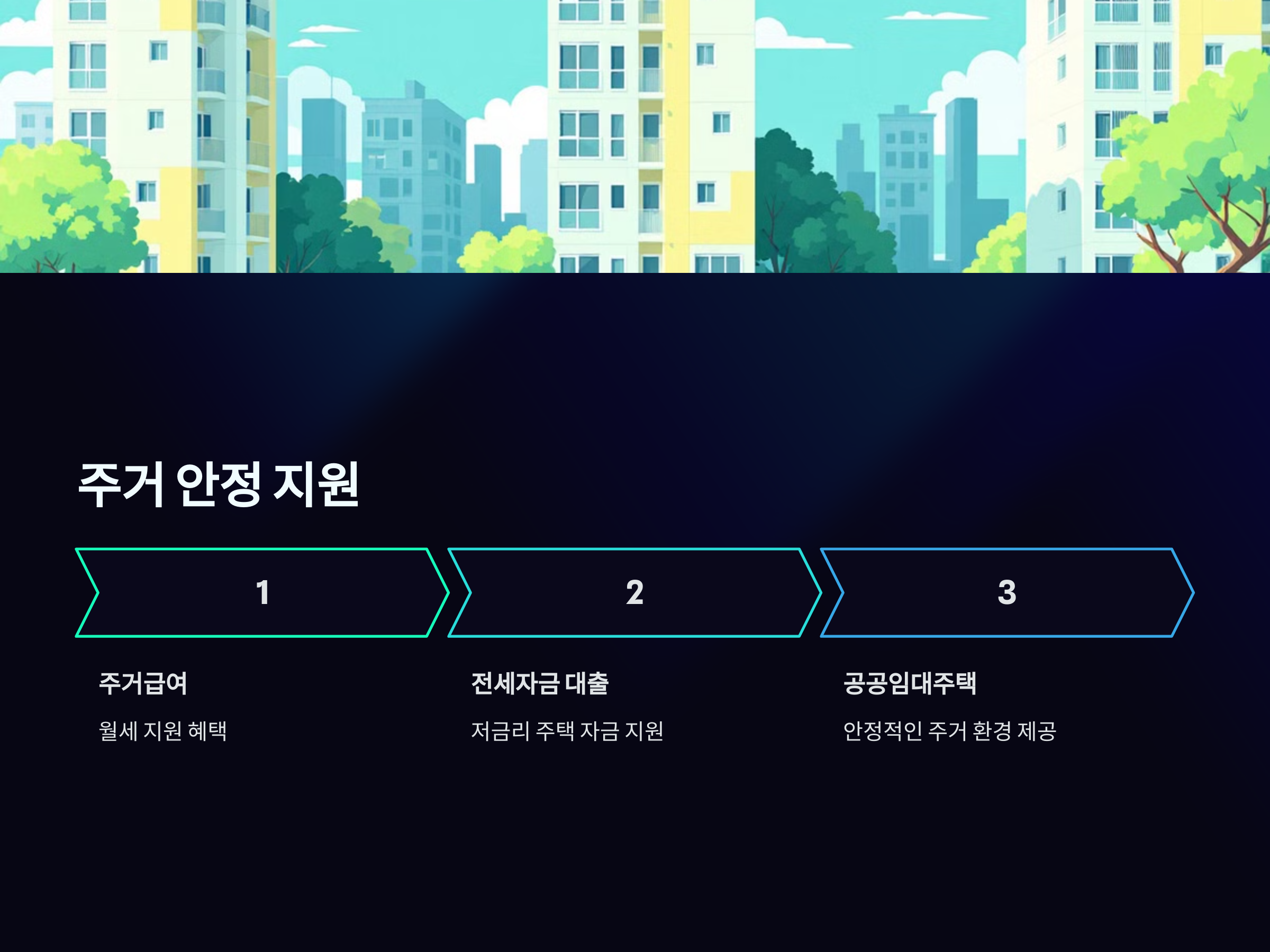- 지원 내용: 주거급여, 전세자금 대출, 공공임대주택 제공 등