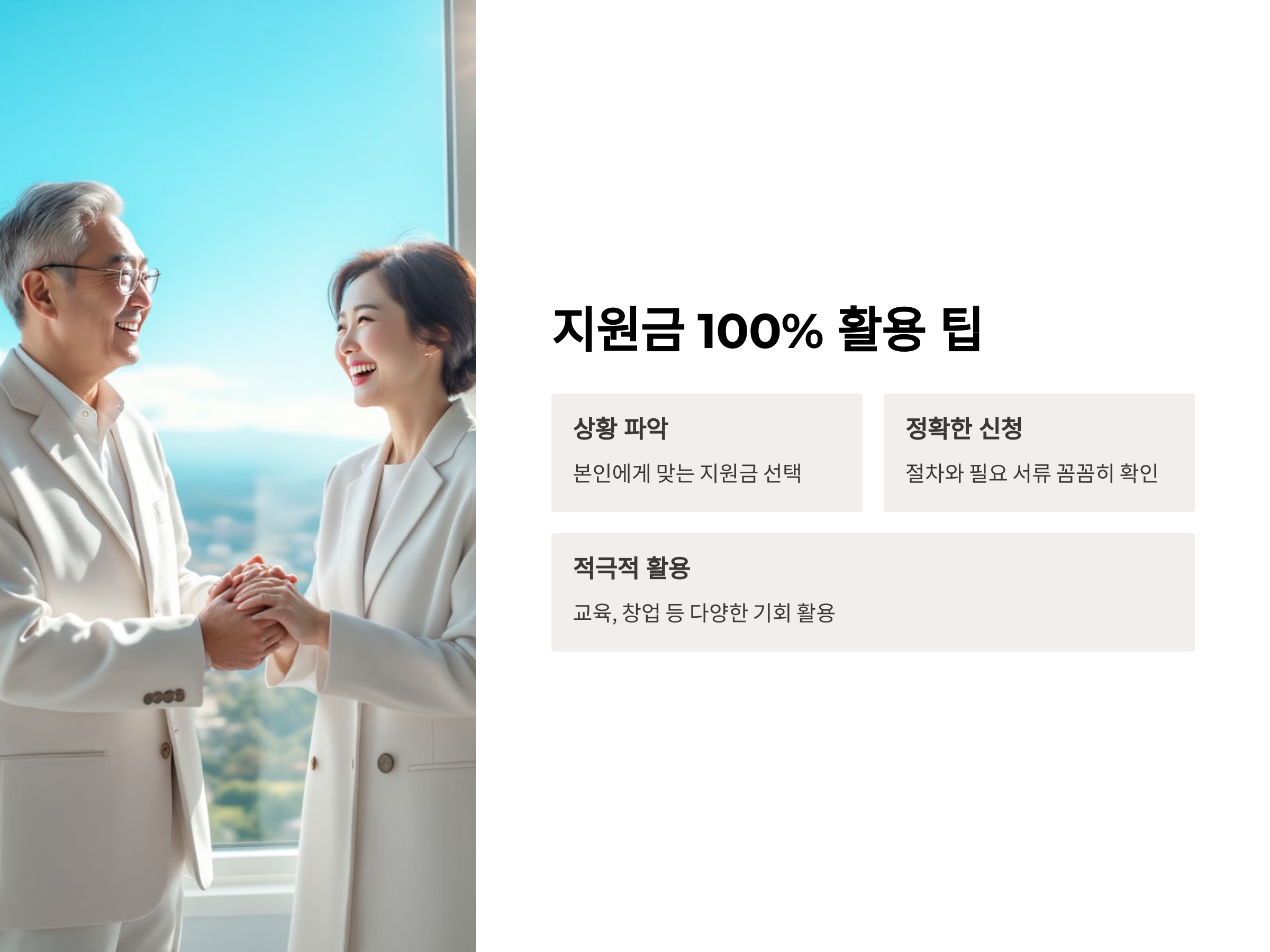 퇴직 후에는 시간적 여유가 생기므로 자신이 받을 수 있는 지원금을 적극적으로 활용하여 더 나은 미래를 준비하세요.