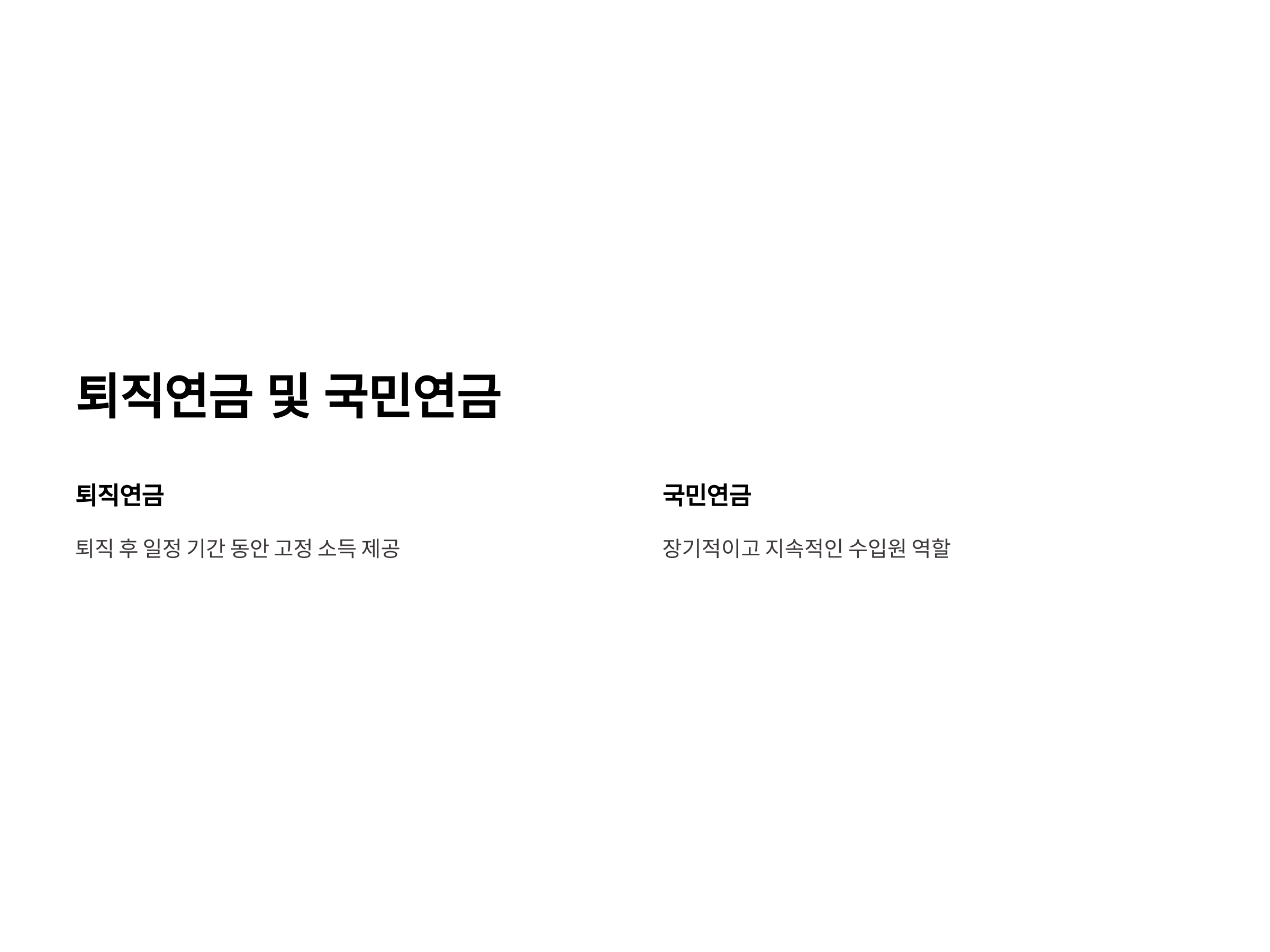 퇴직 후 경제적 안정성을 확보하기 위한 또 다른 중요한 방법은 퇴직연금과 국민연금을 활용하는 것입니다. 퇴직연금은 퇴직 후 일정 기간 동안 수령할 수 있는 연금이며, 국민연금은 장기적인 안정적인 수입원을 제공합니다.