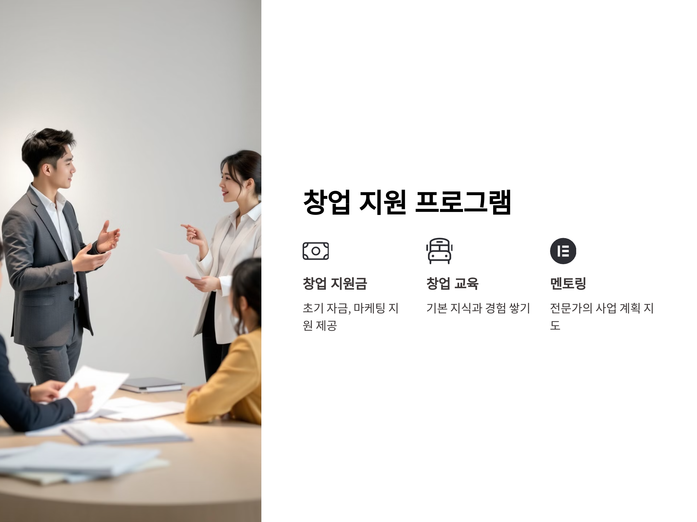 정부는 창업을 희망하는 퇴직자들에게 다양한 지원금을 제공합니다. 지원금은 보통 창업 초기 자금으로 사용되며, 사업 아이템을 실현하기 위한 재정적 지원을 받을 수 있습니다. 또한, 정부는 창업자들을 위한 다양한 교육 프로그램과 멘토링 서비스를 제공하여 창업 성공 가능성을 높여줍니다.