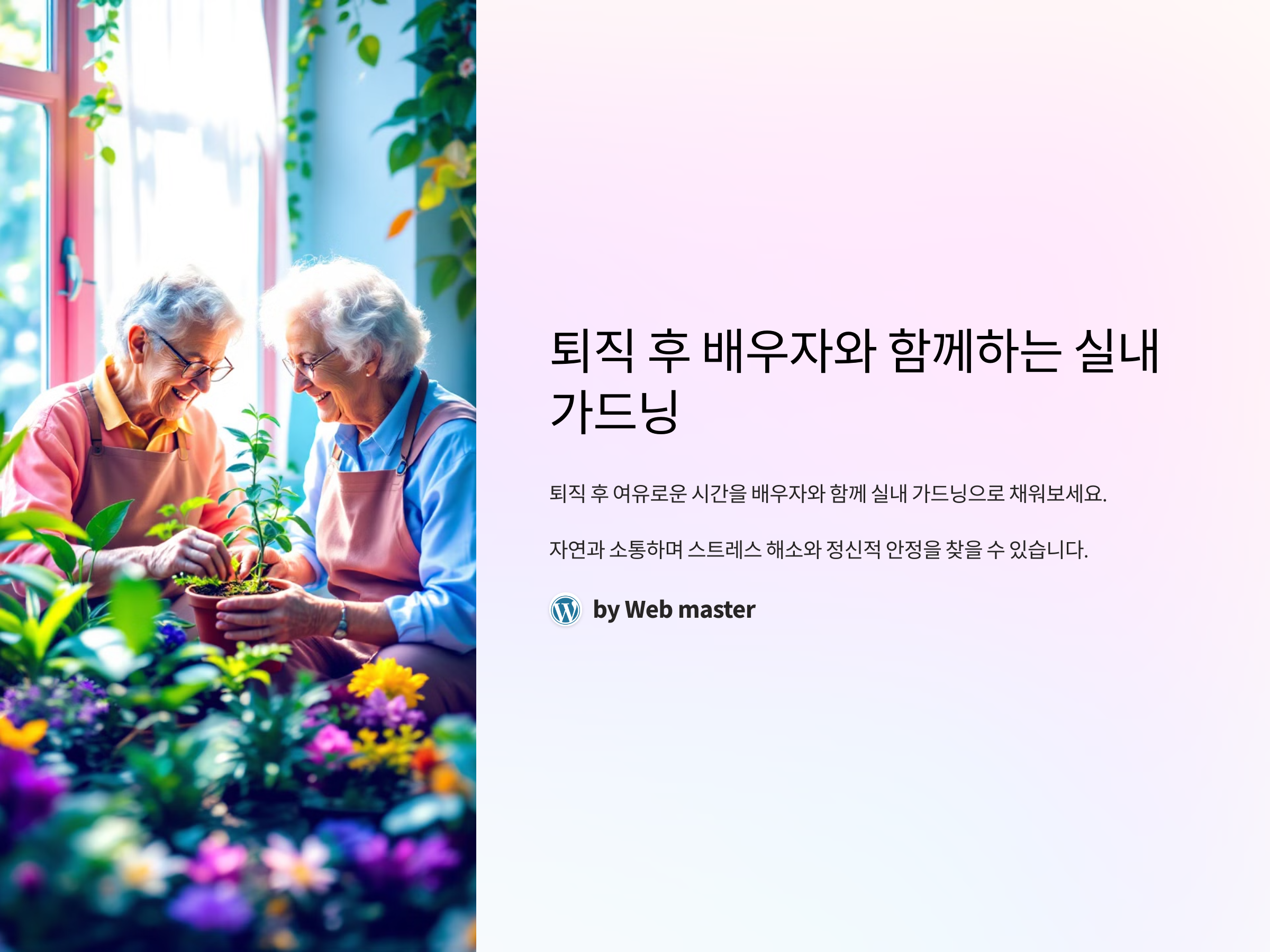 퇴직 후 배우자와 함께 실내에서 가드닝 및 원예 활동을 즐기는 것은 매우 유익한 경험이 될 수 있습니다. 가드닝을 통해 자연과의 소통을 즐기고, 실내 환경을 아름답게 꾸미며, 건강한 라이프스타일을 유지하는 것 모두 가능해집니다. 또한, 이 과정에서 부부 간의 유대감을 강화하고, 즐거운 시간을 보낼 수 있습니다. 퇴직 후 여유로운 시간을 보내고 싶은 분들에게 실내 가드닝은 이상적인 활동이 될 것입니다.