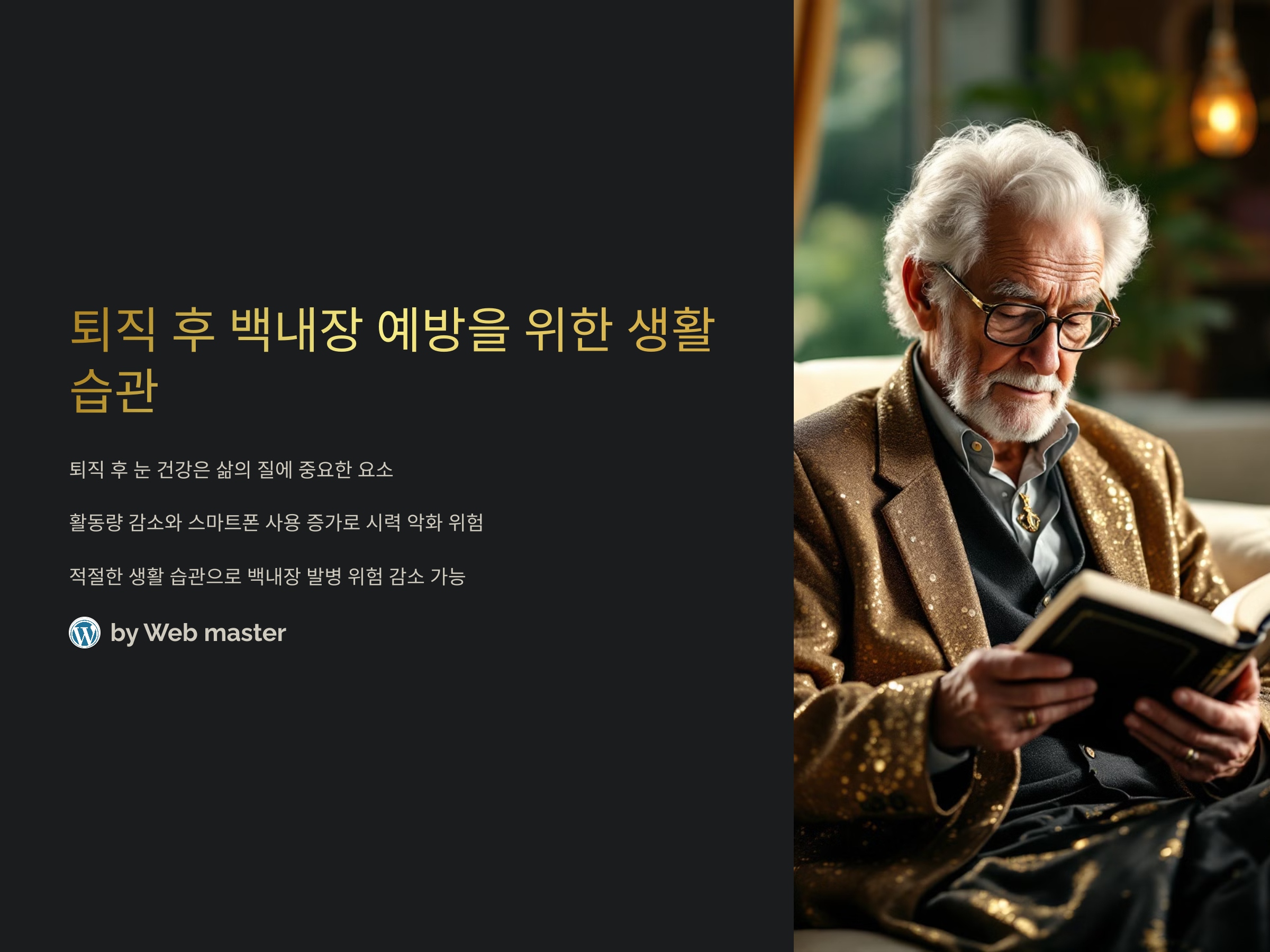 퇴직 후 눈 건강을 유지하는 것은 삶의 질을 높이는 중요한 요소입니다. 특히 백내장은 노화와 관련이 깊어, 예방을 위해 일상에서 신경 써야 할 부분이 많습니다. 최근 연구에 따르면, 퇴직 후 활동량이 줄어들고 스마트폰, TV 사용 시간이 증가하면서 눈 건강이 빠르게 악화될 수 있다고 합니다. 그러나 적절한 생활 습관을 실천하면 백내장의 발병 위험을 줄일 수 있습니다. 퇴직 후에도 활기찬 시력을 유지하는 방법을 지금부터 소개해 드리겠습니다.