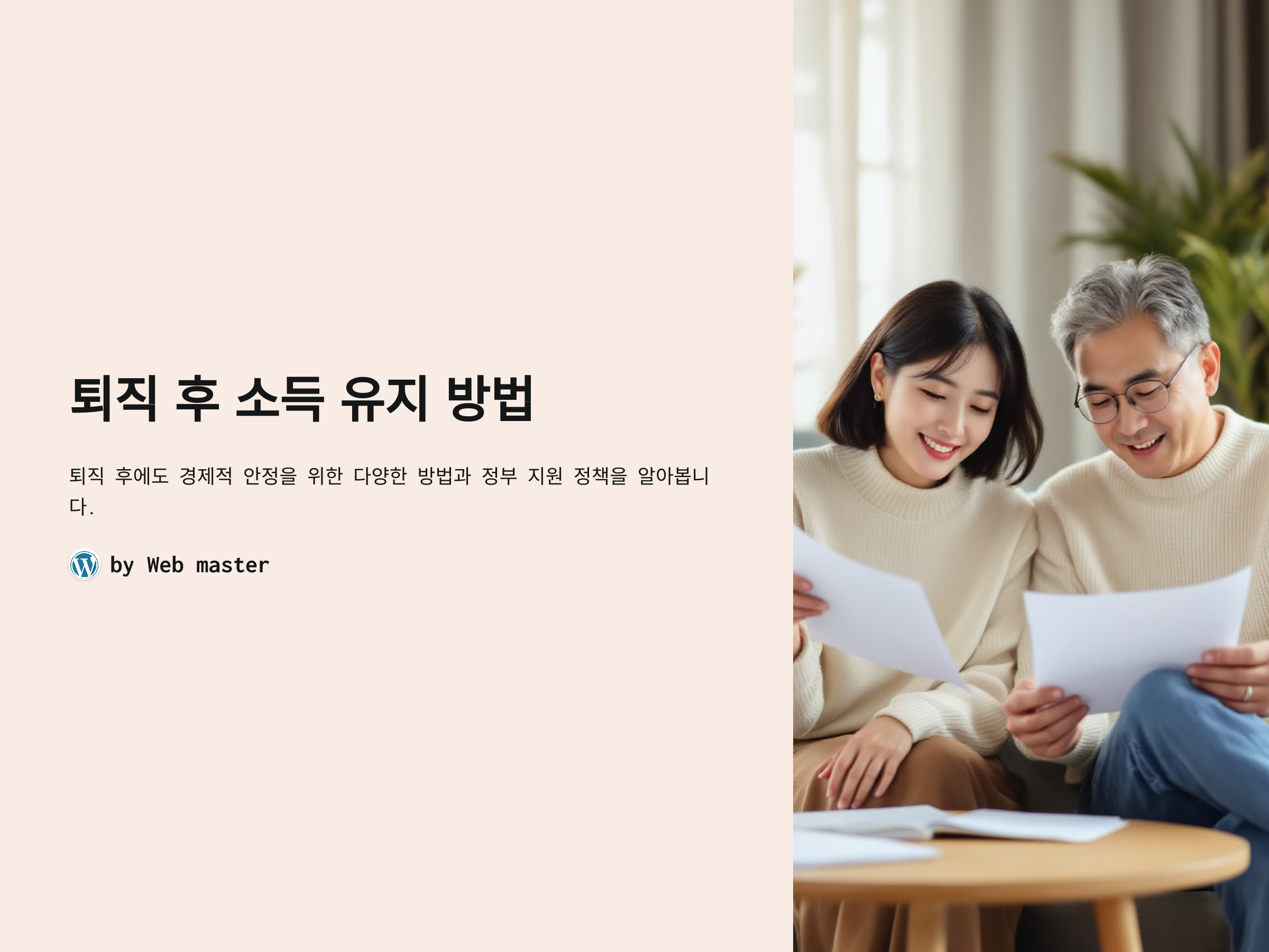 퇴직 후 소득을 유지하는 방법에 대한 고민은 많은 퇴직자들에게 중요한 문제입니다. 퇴직 이후에도 일정한 수입을 유지하며 경제적 안정을 얻기 위해서는 다양한 방법을 고려해야 합니다. 특히, 정부에서 제공하는 다양한 지원 정책을 활용하는 것도 좋은 선택이 될 수 있습니다. 이번 글에서는 퇴직 후 소득을 유지하는 방법과 함께 정부 지원에 대해 자세히 다뤄보겠습니다.