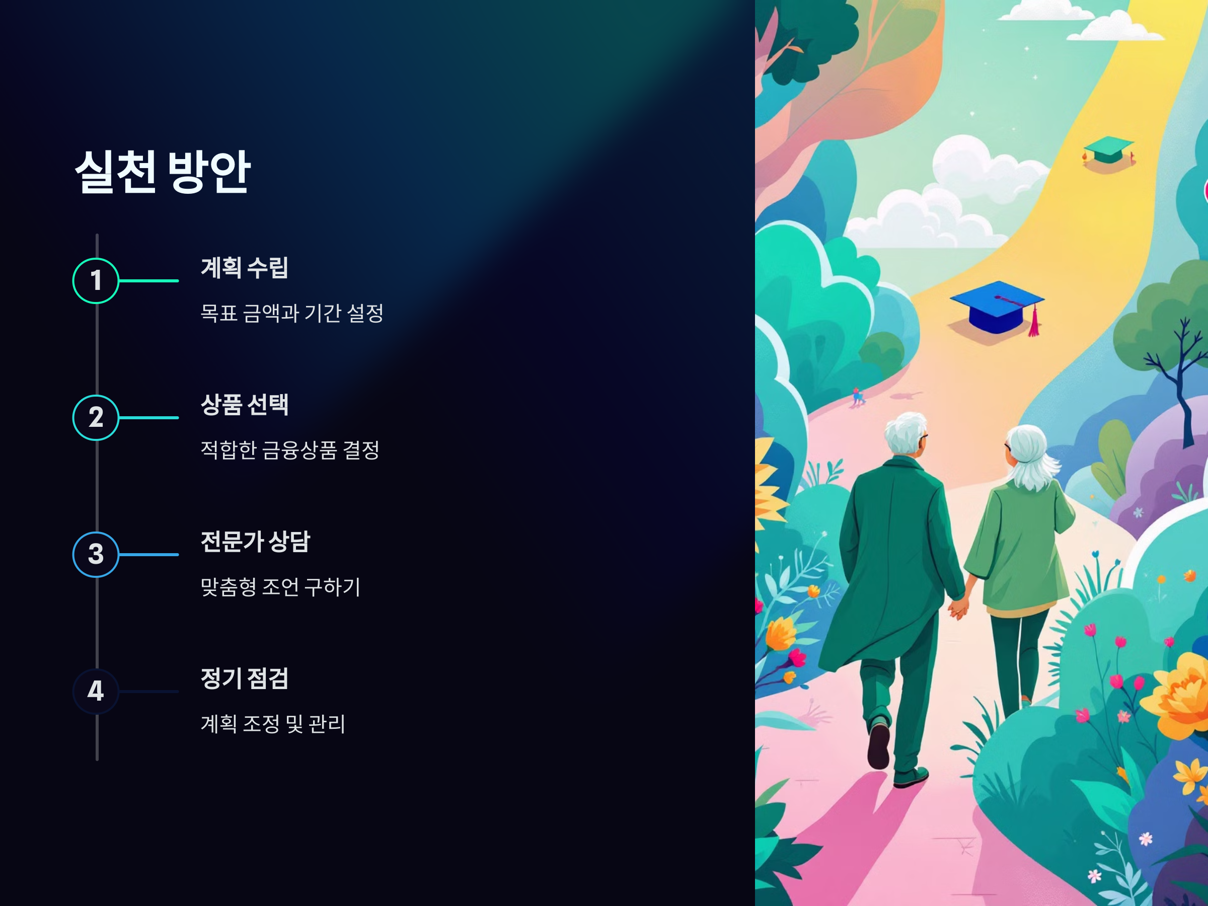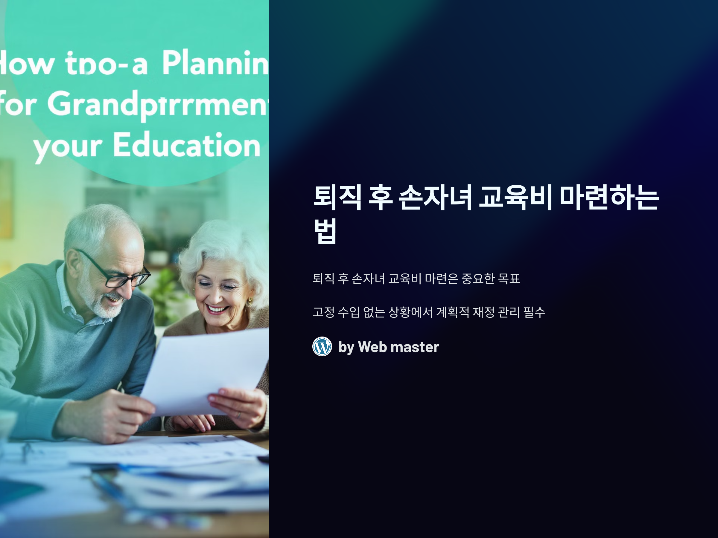 퇴직 후 손자녀 교육비를 마련하는 가장 중요한 핵심은 철저한 계획과 다양한 재정적 전략을 병행하는 것입니다. 목표 금액을 설정하고, 이를 실현할 수 있는 금융 상품과 전략을 선택하는 것이 중요합니다. 연금, 금융 상품, 자산 관리 전문가의 도움, 절세 전략 등을 활용하여 교육비 마련을 위한 체계적인 계획을 세우는 것이 필요합니다.