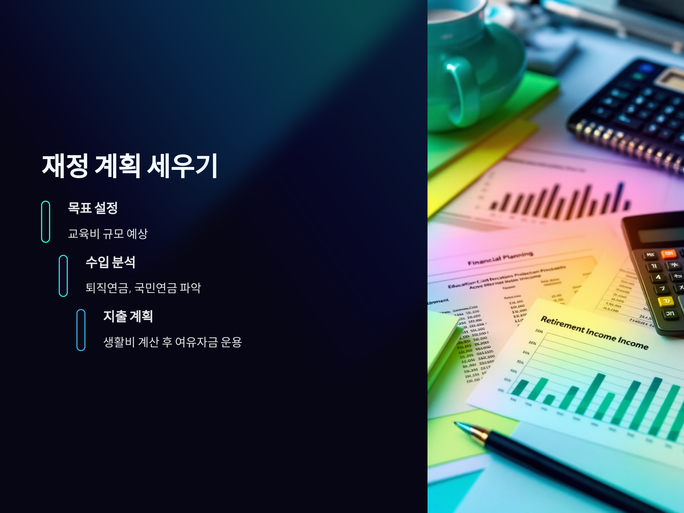 퇴직 후 손자녀의 교육비를 마련하는 첫 번째 단계는 철저한 재정 계획을 세우는 것입니다. 이를 통해 목표 금액을 정확하게 파악하고, 이를 실현할 수 있는 방법을 선택할 수 있습니다. 재정 계획을 세울 때 중요한 요소는 바로 '목표 설정'과 '수입 및 지출 분석'입니다.