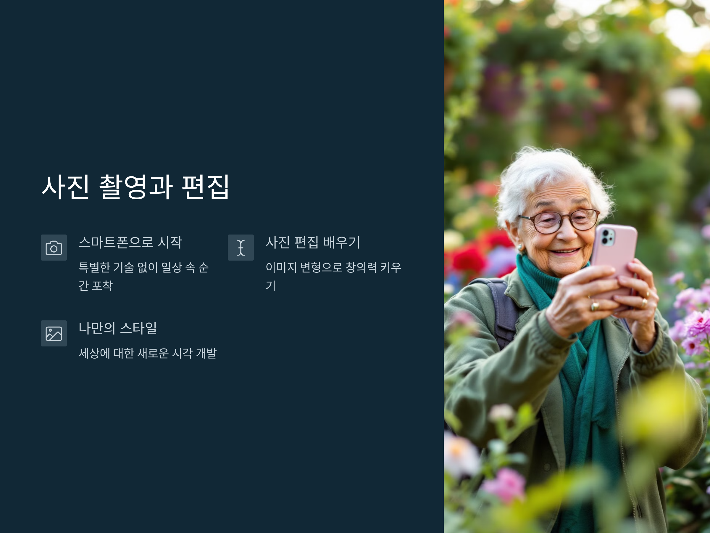 사진 촬영은 특별한 기술 없이도 시작할 수 있는 취미입니다. 스마트폰을 이용해 일상 속에서 아름다운 순간을 포착하고, 이를 사진으로 남기는 일은 퇴직 후 시간 여유를 즐기기 좋은 활동입니다. 또한, 사진 편집을 배우면 촬영한 이미지를 더욱 아름답게 변형할 수 있어 창의력도 키울 수 있습니다. 이 취미는 본인의 스타일을 개발하고, 세상에 대한 새로운 시각을 키울 수 있는 기회를 제공합니다. 사진은 나만의 특별한 순간을 기록하는 취미가 되어, 평생 간직할 수 있는 멋진 작품을 만들 수 있습니다.