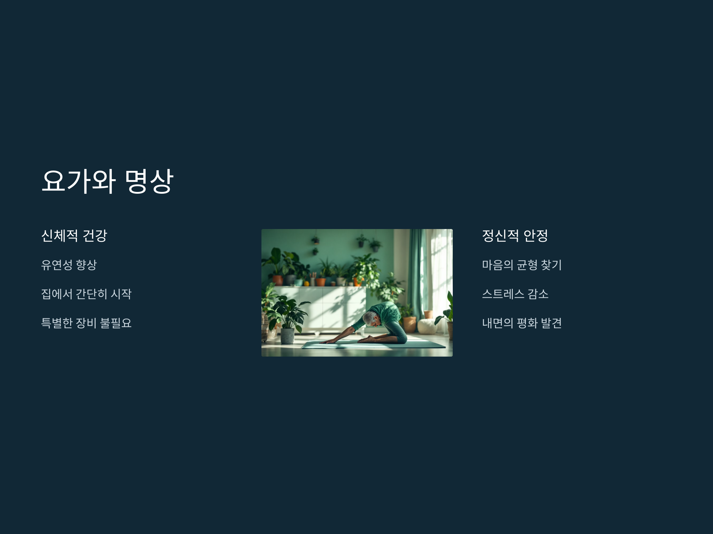 요가와 명상은 신체적, 정신적 건강을 동시에 챙길 수 있는 활동입니다. 퇴직 후에는 자신의 신체와 마음의 균형을 찾는 것이 중요해지기 때문에, 요가와 명상은 매우 적합한 취미입니다. 요가는 유연성을 향상시키고, 명상은 정신적 안정을 제공합니다. 요가는 집에서 간단히 시작할 수 있으며, 특별한 장비 없이도 몸과 마음을 관리할 수 있습니다. 명상 또한 쉽게 시작할 수 있는 활동으로, 스트레스를 줄이고 마음의 평화를 찾는 데 매우 유효합니다.