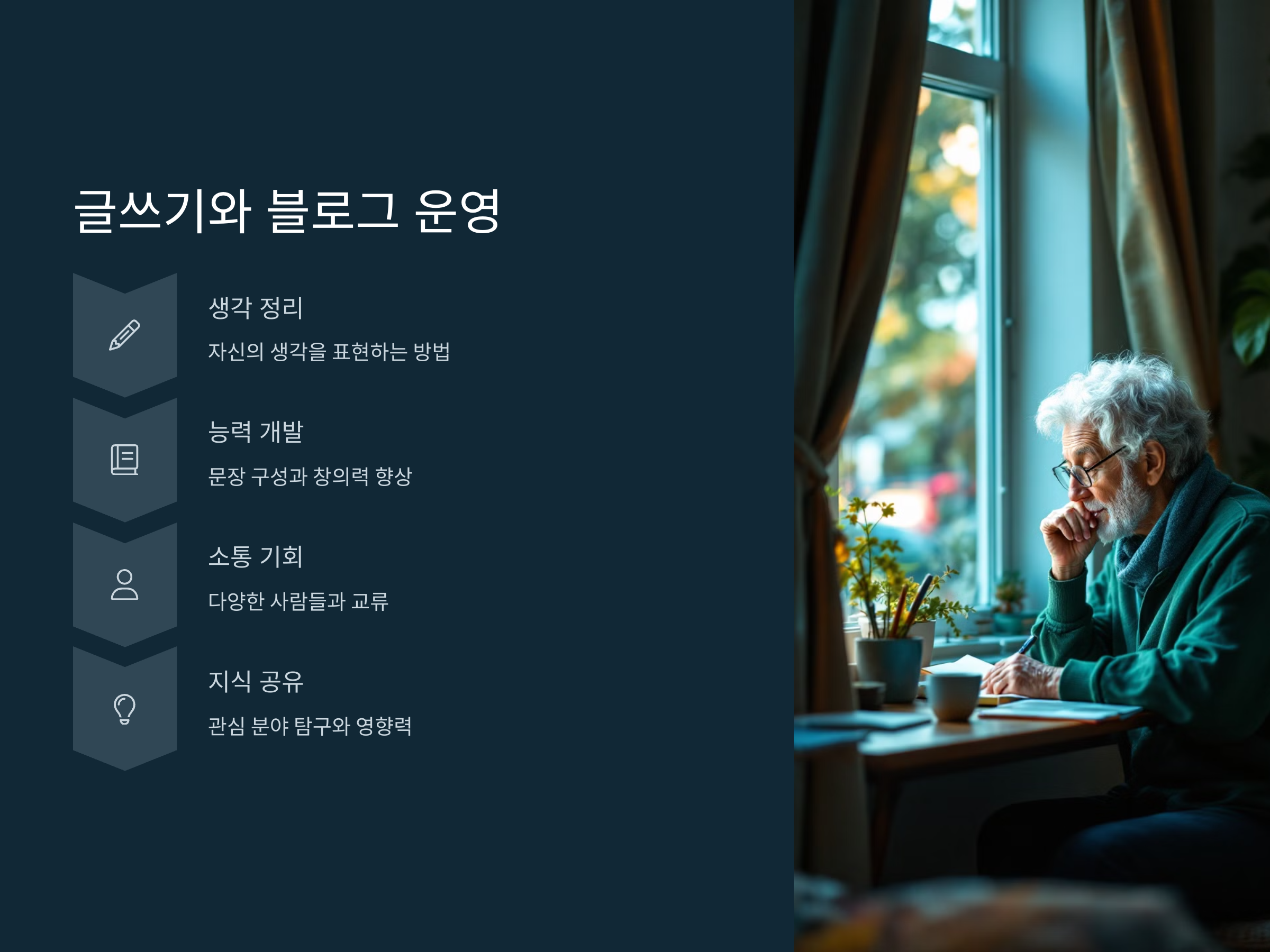 글쓰기는 자신의 생각을 정리하고 표현하는 좋은 방법입니다. 퇴직 후에는 여유로운 시간을 활용해 자신만의 블로그를 운영하거나, 일기를 쓰는 취미를 시작할 수 있습니다. 글쓰기는 문장 구성 능력과 창의력, 표현력을 키울 수 있는 취미로, 다양한 사람들과 소통할 수 있는 기회도 제공합니다. 블로그는 또한 자신이 관심 있는 분야에 대해 깊이 탐구하고, 그 내용을 다른 사람들과 공유하는 플랫폼이 될 수 있습니다. 퇴직 후 글쓰기를 통해 자신을 더욱 잘 표현하고, 다른 사람들에게 영향을 미칠 수 있습니다.