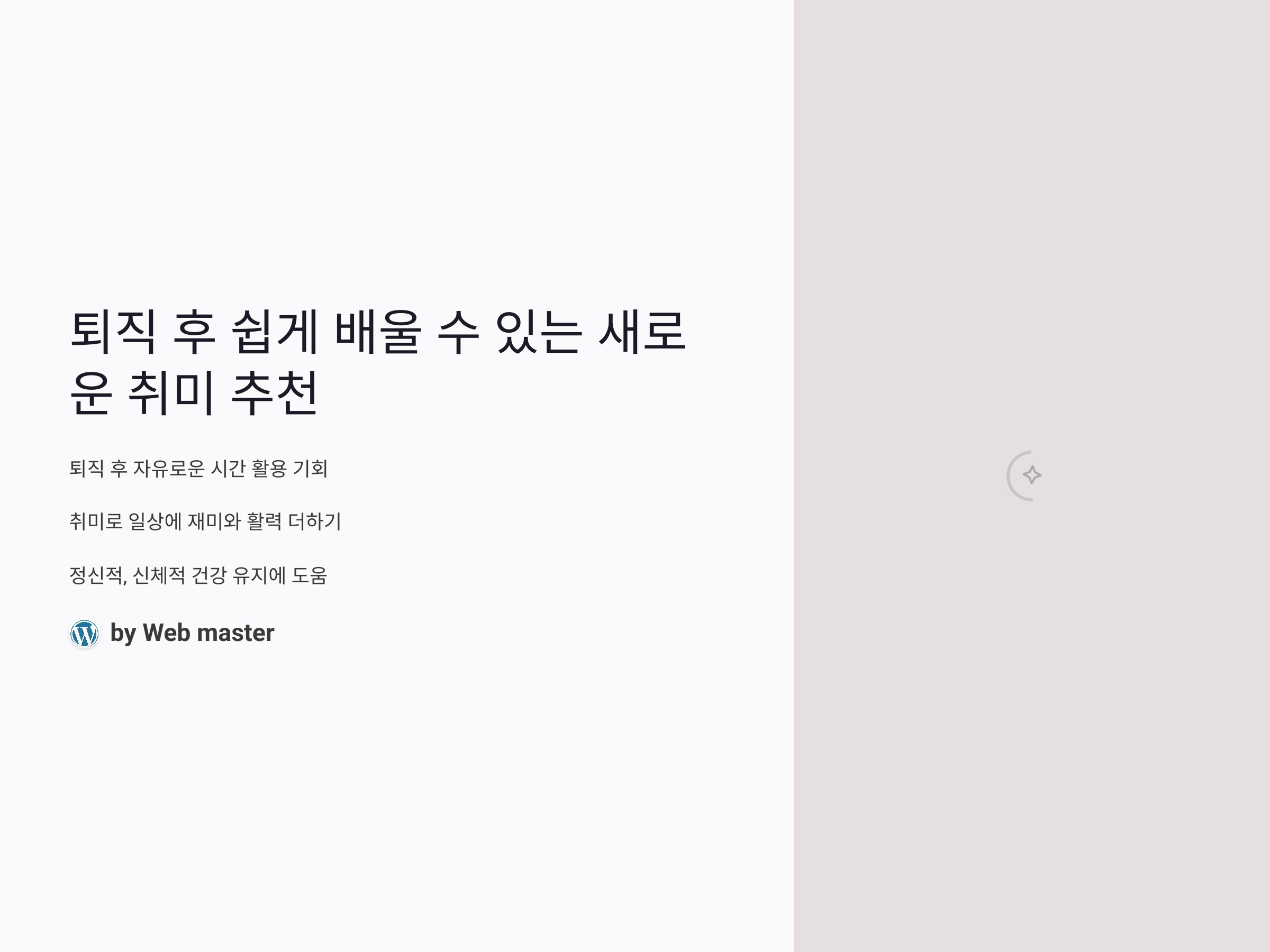 퇴직 후 자유로운 시간이 생기면서, 그동안 미뤄왔던 일이나 새로운 활동에 도전할 수 있는 기회가 주어집니다. 이 시점을 어떻게 활용할지 고민하는 분들이 많을 텐데요. 새로운 취미를 시작하려면 부담 없이 쉽게 배울 수 있는 것이 중요합니다. 취미는 일상의 재미와 활력을 주며, 정신적, 신체적 건강을 유지하는 데도 큰 도움이 됩니다. 이 글에서는 퇴직 후 쉽게 배울 수 있는 취미를 추천드립니다.