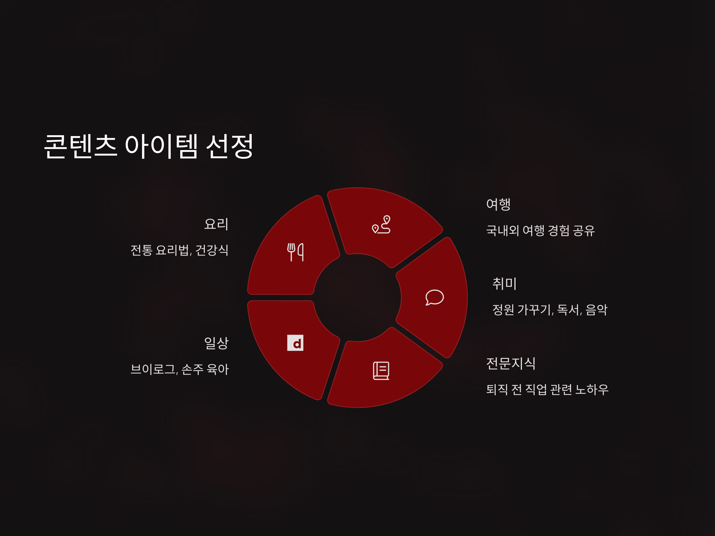 성공적인 채널 운영을 위해 가장 먼저 고민해야 할 것은 '내가 잘할 수 있는 주제'입니다. 이때 중요한 것은 '흥미'와 '지속성'입니다. 본인이 좋아하고 오래 이야기할 수 있는 주제여야 구독자와의 소통이 자연스럽고 꾸준한 업로드가 가능합니다. 시니어 유튜버에게 적합한 콘텐츠 주제로는 요리, 여행기, 손주 육아, 건강관리 팁, 정원 가꾸기, 고전 음악/영화 소개, 전통문화 체험 등이 있습니다. 또한, 퇴직 직전의 직업과 관련된 정보나 지식을 전달하는 것도 좋은 선택입니다. 최근에는 ‘하루 일상 브이로그’를 통해 삶의 방식 자체를 콘텐츠화 하는 경우도 많아졌습니다.