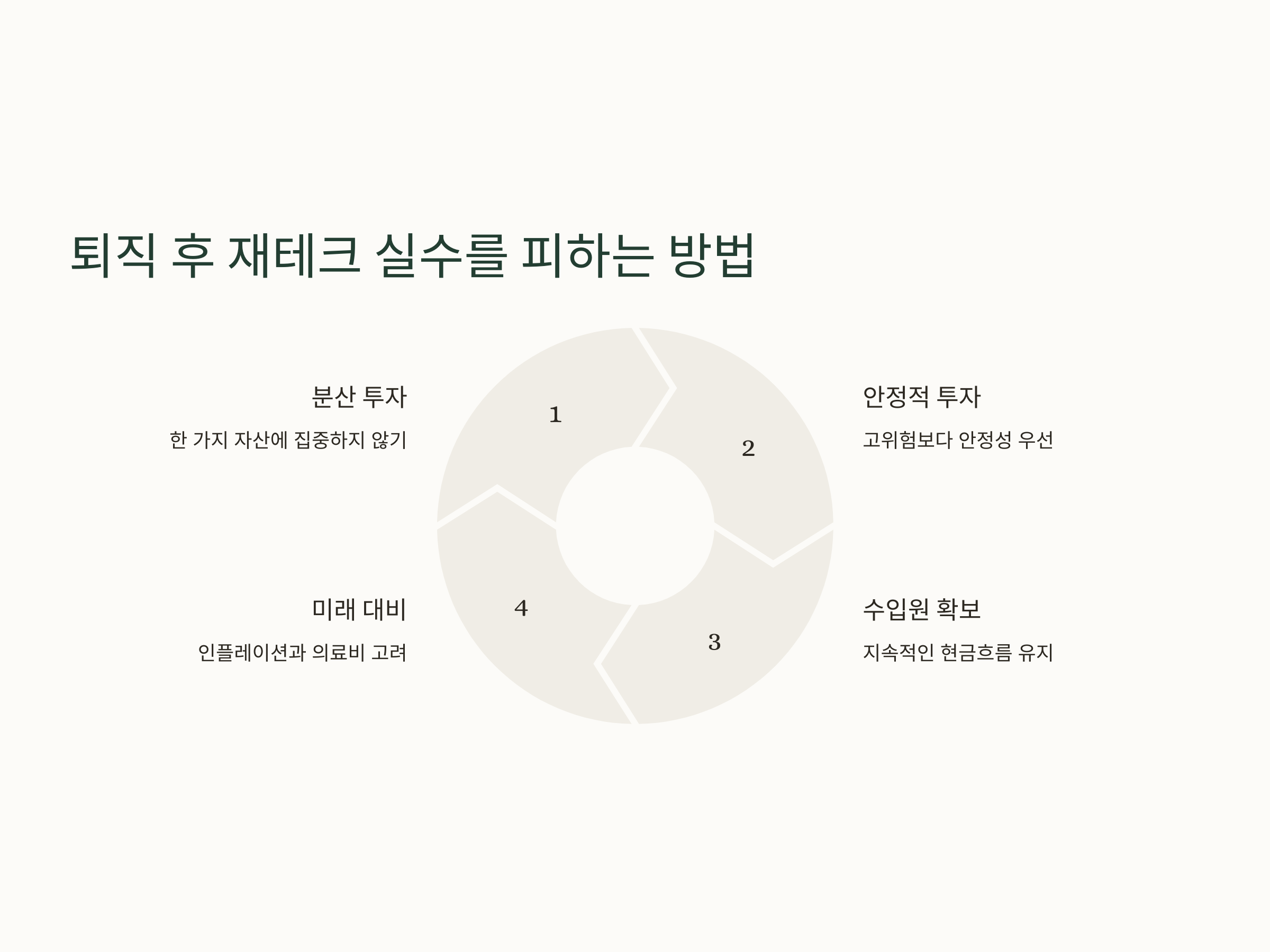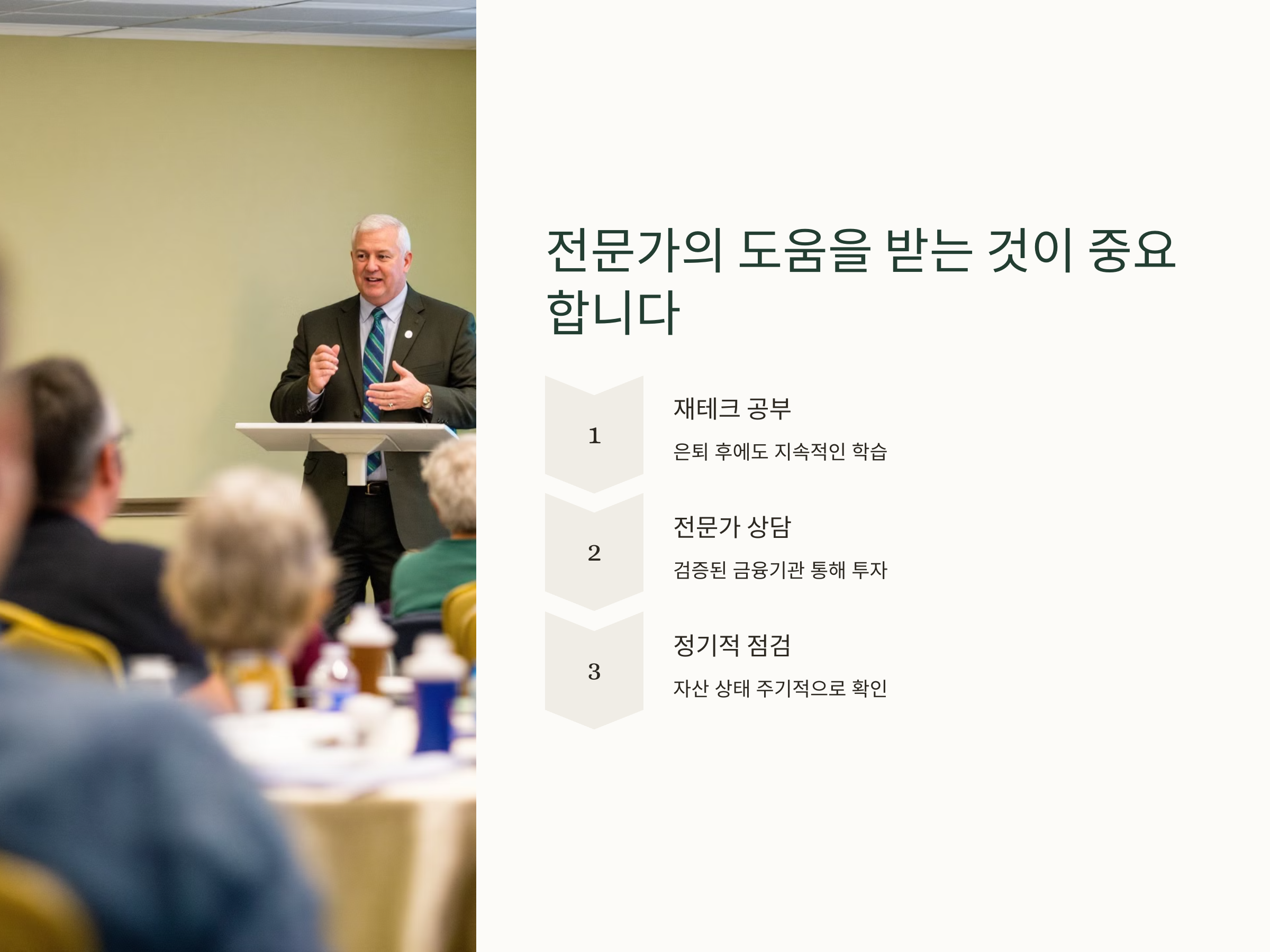위에서 언급한 실수들을 피하기 위해서는 사전에 철저한 준비와 계획이 필요합니다. 은퇴 후에도 지속적인 재테크 공부와 전문가의 도움을 받는 것이 중요합니다.