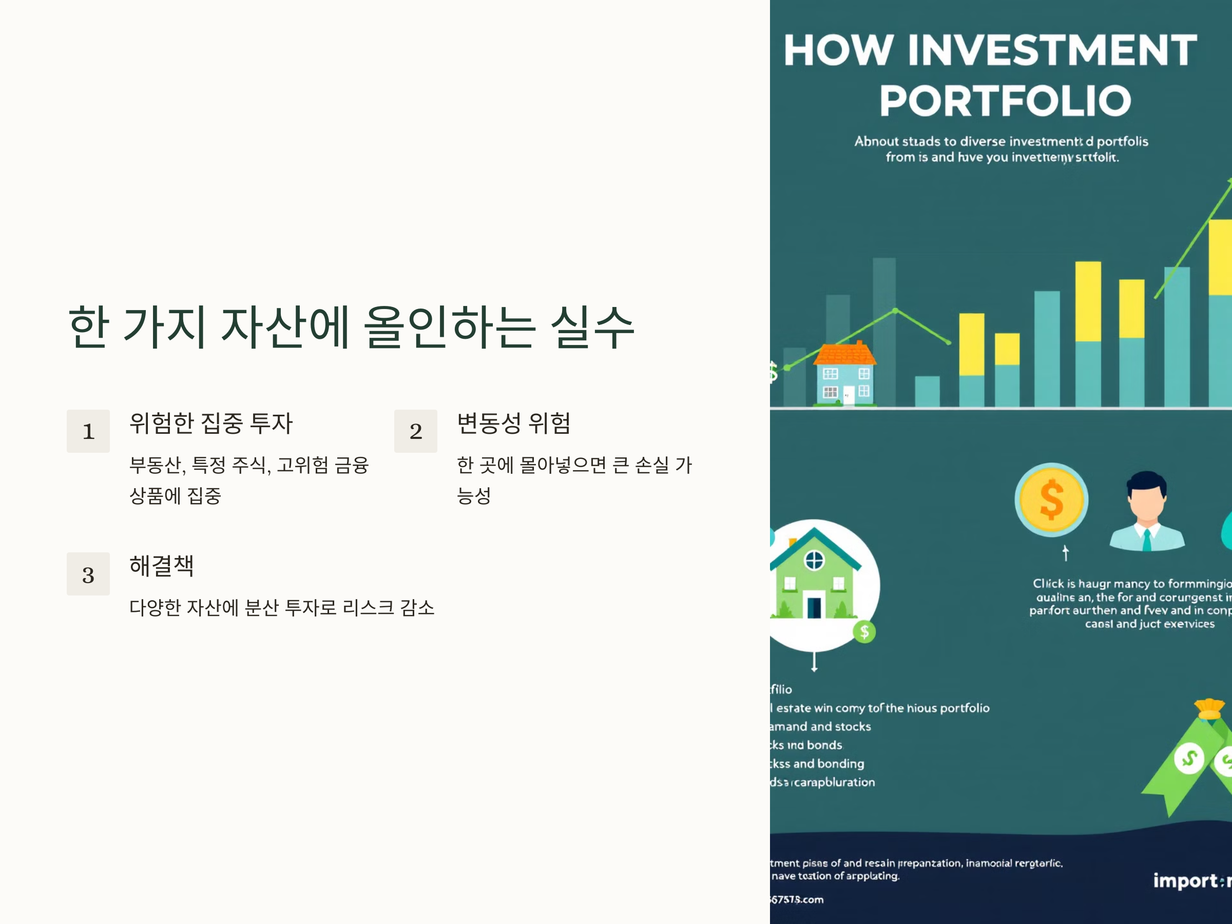퇴직자들이 흔히 하는 가장 큰 실수 중 하나는 한 가지 자산에 모든 돈을 투자하는 것입니다. 특히 부동산, 특정 주식, 혹은 고위험 금융상품에 집중 투자하는 경우가 많습니다. 자산을 한 곳에 몰아넣으면 변동성이 커질 경우 큰 손실을 입을 수 있습니다.