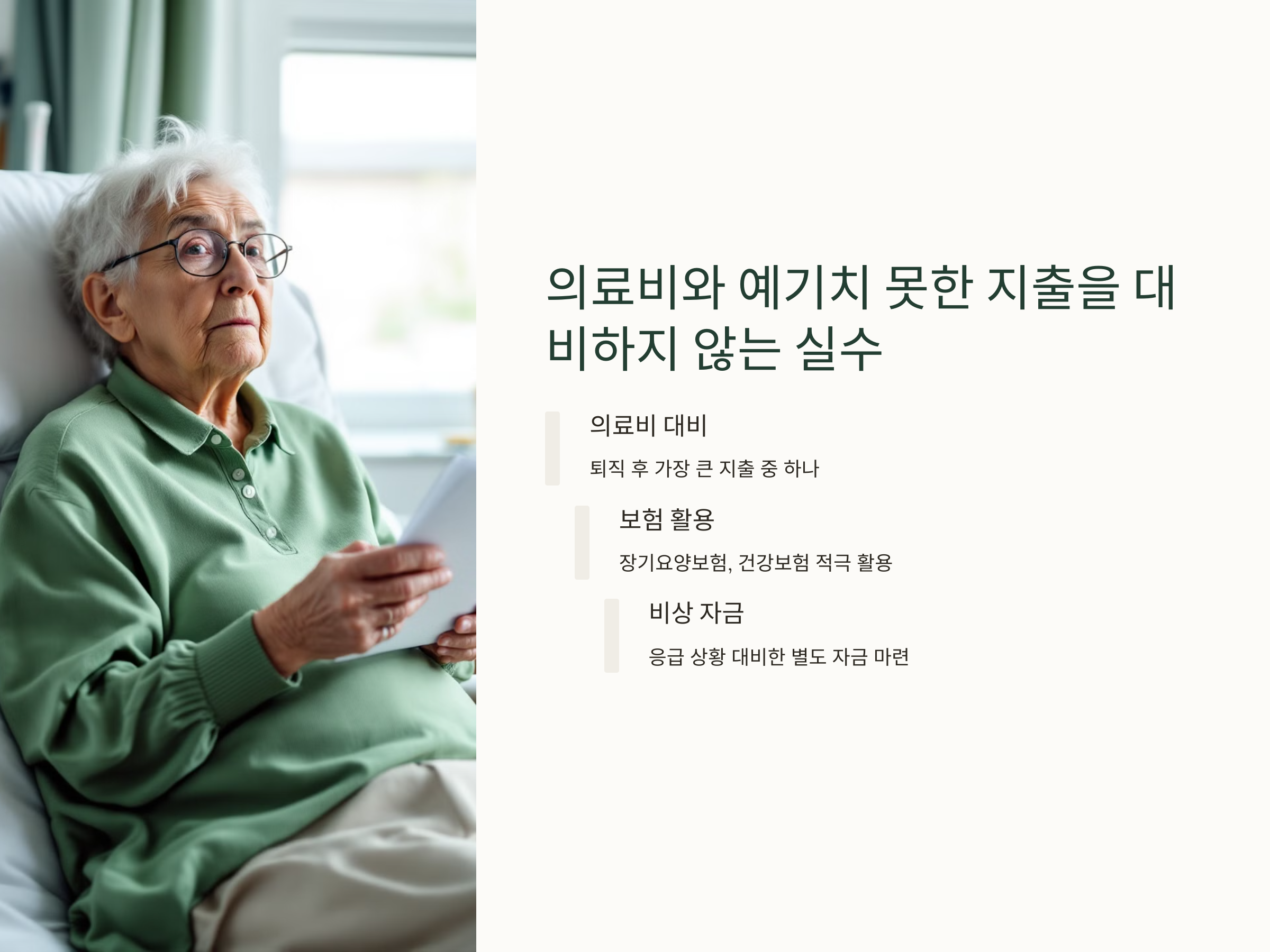 퇴직 후 가장 큰 지출 중 하나는 의료비입니다. 하지만 많은 시니어들이 이에 대한 대비 없이 재산을 운용하다가 예상치 못한 큰 지출로 인해 어려움을 겪습니다.