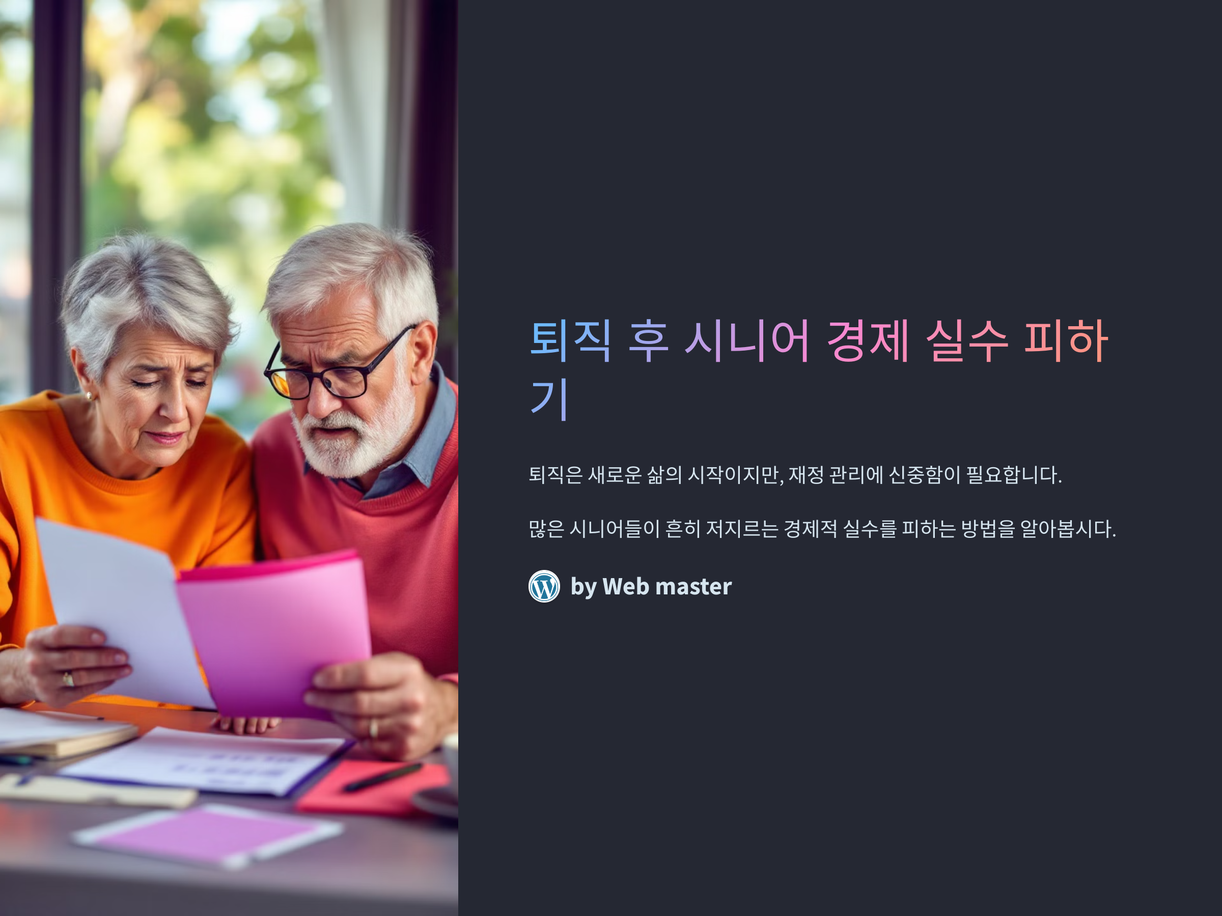 퇴직은 새로운 삶의 시작이지만, 재정 관리에 있어 신중함이 필요합니다. 많은 시니어들이 흔히 저지르는 경제적 실수를 피하기 위해 아래의 사항들을 숙지하시기 바랍니다.