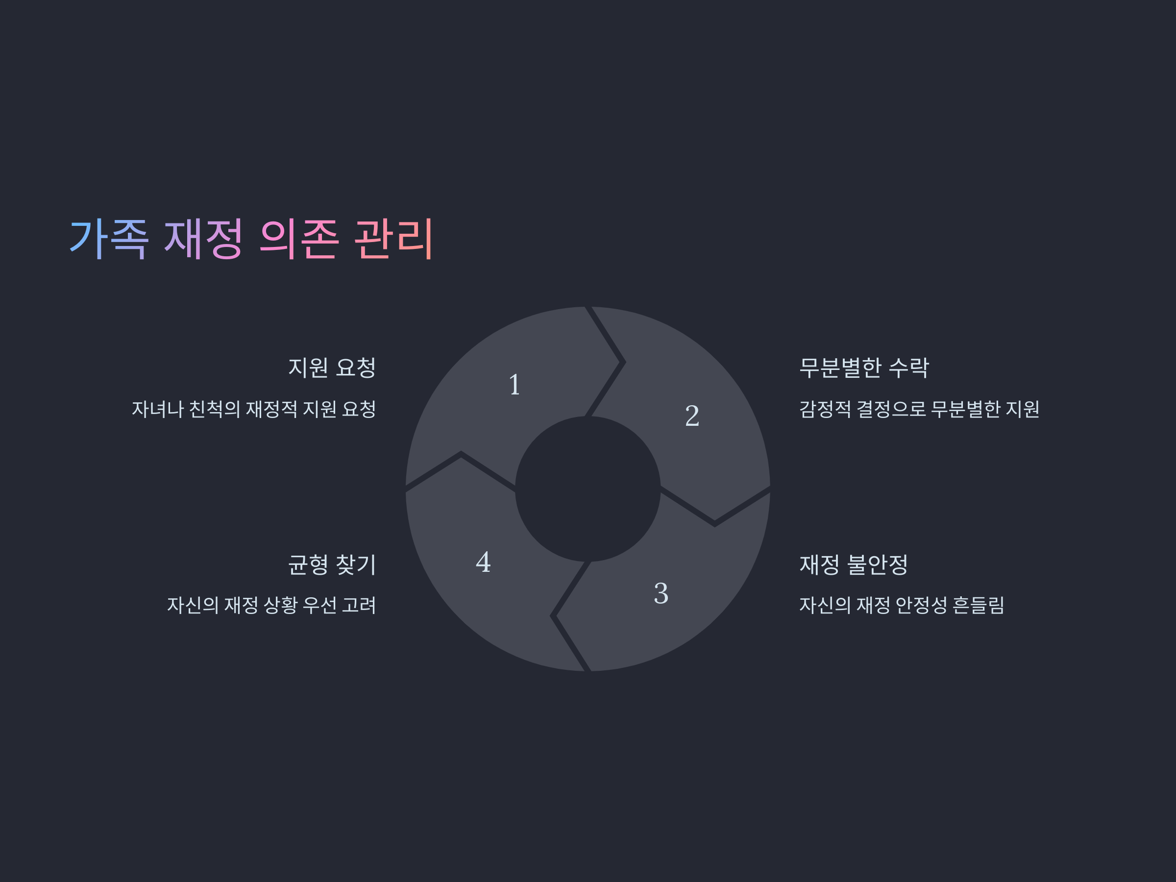 자녀나 친척의 재정적 지원 요청을 무분별하게 수락하면 자신의 재정 안정성이 흔들릴 수 있습니다. 도움을 주는 것은 중요하지만, 자신의 재정 상황을 우선적으로 고려해야 합니다.