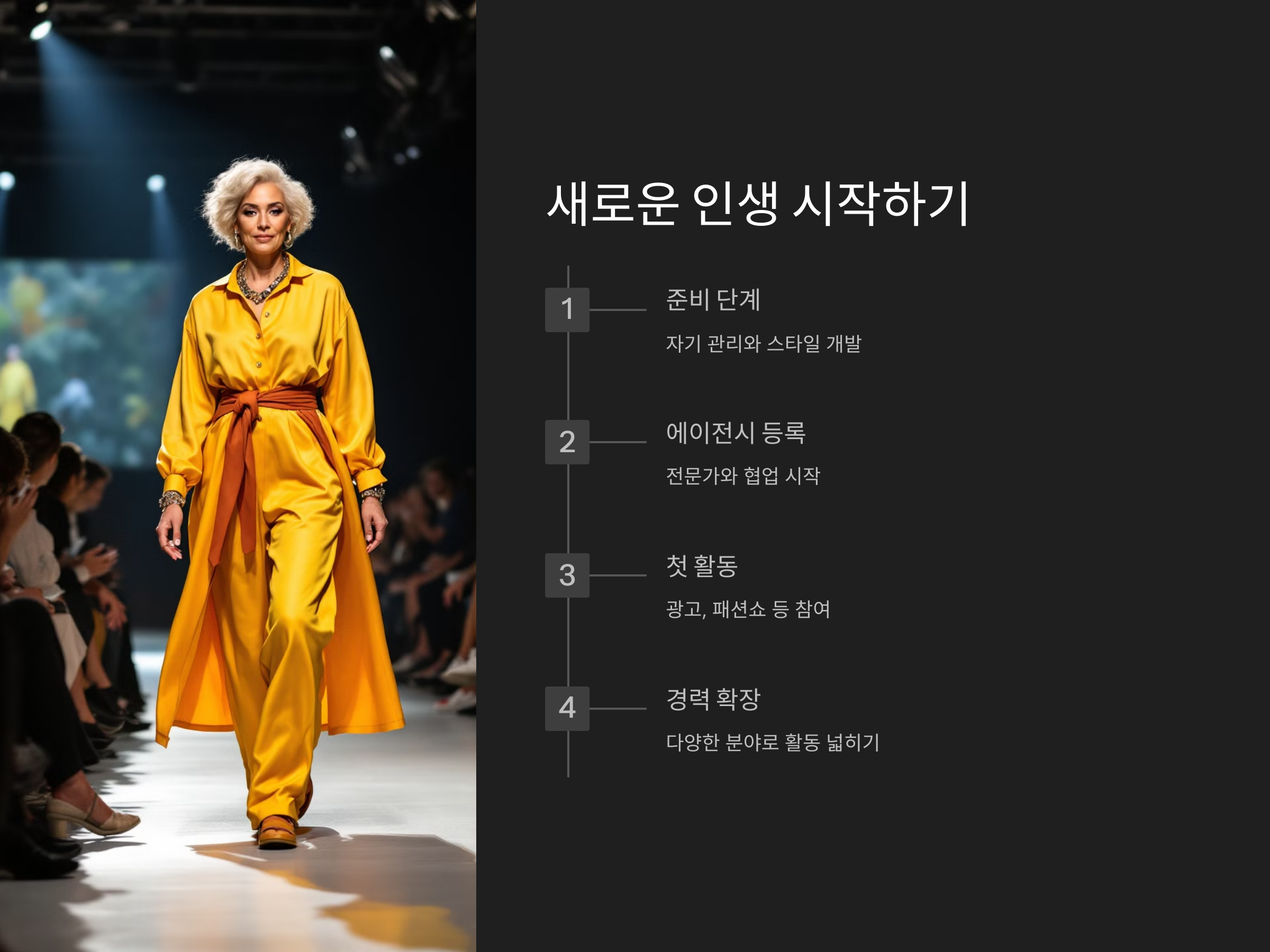 퇴직 후 새로운 인생의 챕터를 여는 방법 중 하나가 바로 실버 모델로 도전하는 것입니다. 이제 나이는 숫자에 불과하며, 다양한 분야에서 나이와 상관없이 활동할 수 있는 기회가 많아졌습니다. 특히, 실버 모델은 경력과 인생의 이야기를 담은 강력한 장점이 될 수 있습니다. 실버 모델로서 새로운 도전을 시작하려는 분들을 위해, 어떤 준비가 필요한지, 어떻게 시작할 수 있는지에 대해 자세히 다뤄보겠습니다.