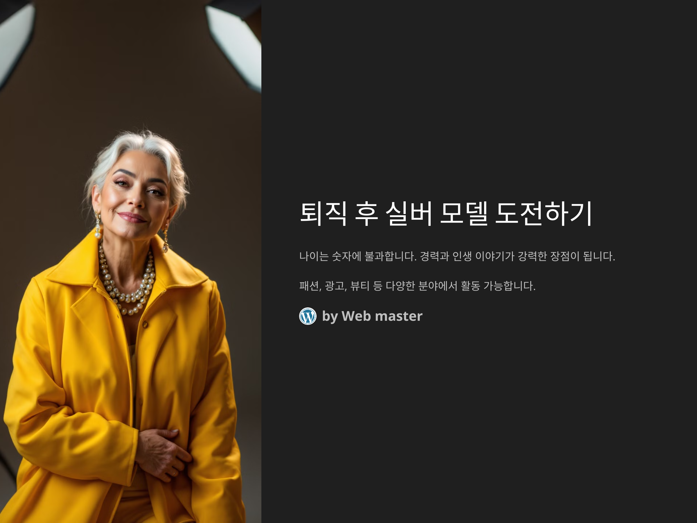 퇴직 후 실버 모델로 도전하는 것은 새로운 인생을 시작하는 멋진 방법입니다. 나이가 많다고 해서 모델의 꿈을 포기할 필요는 없습니다. 실버 모델은 그 나이대에만 가능한 매력과 특성을 가지고 있으며, 이를 통해 다양한 광고와 캠페인에서 활동할 수 있습니다. 퇴직 후 실버 모델로서 활동하고자 한다면, 자신만의 스타일을 개발하고, 건강을 관리하며, 에이전시와 함께 활동하는 등의 준비가 필요합니다.
