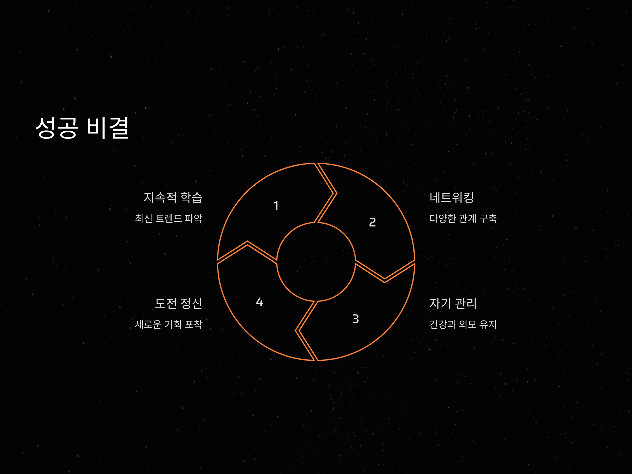 실버 모델로서의 성공을 위해선 내면적인 준비도 필요합니다. 자신을 표현할 수 있는 능력이 부족하면, 모델로서 활동하기 힘들 수 있습니다. 스스로의 매력을 잘 살리고, 카메라 앞에서 자연스럽게 표현할 수 있는 훈련이 필요합니다.