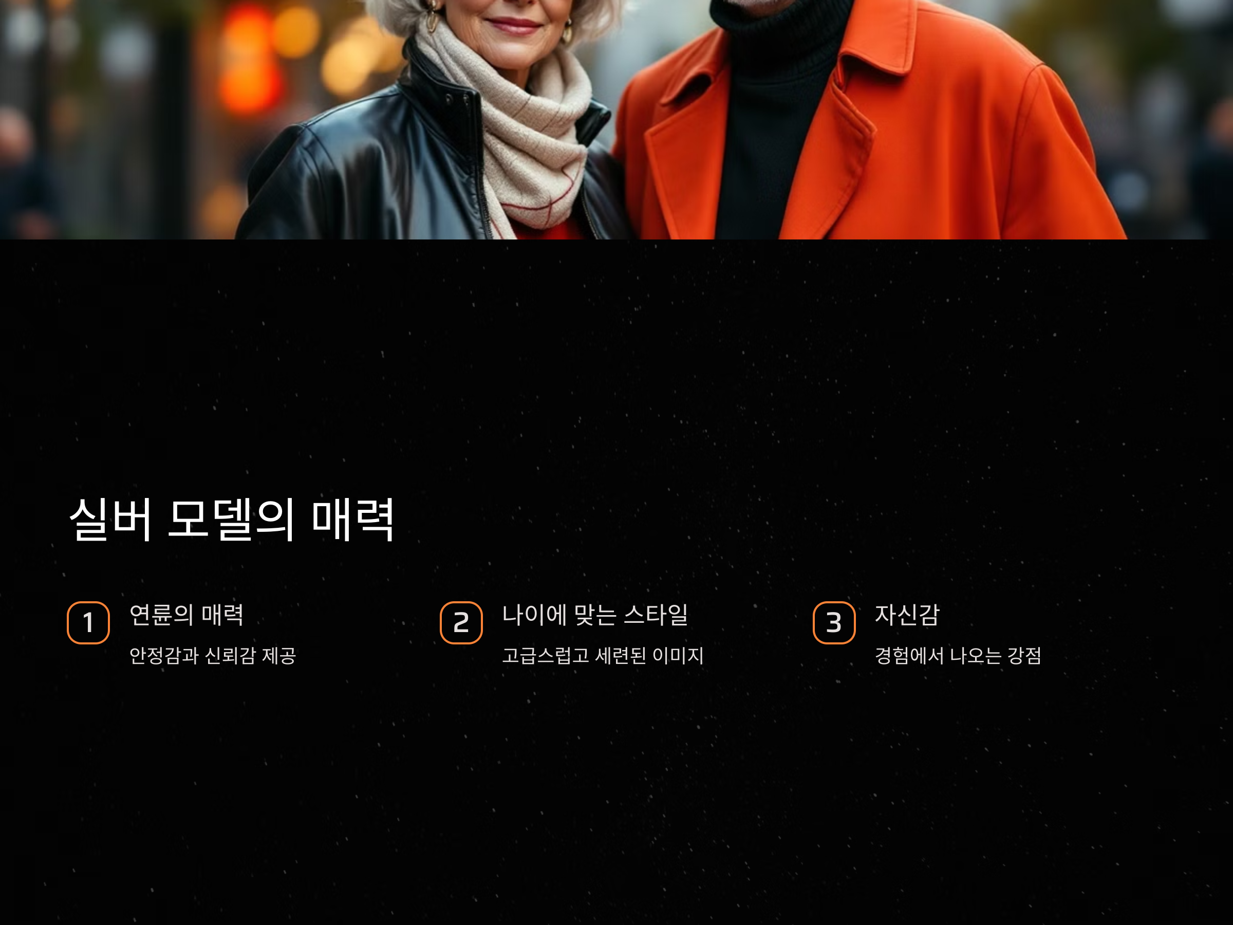 실버 모델의 가장 큰 장점은 연륜에서 나오는 고유한 매력입니다. 젊은 모델들과 달리, 실버 모델은 나이에 맞는 안정감과 신뢰감을 줄 수 있기 때문에 광고나 패션계에서 점점 더 주목받고 있습니다. 이러한 매력을 찾아내는 것이 첫 번째 단계입니다.
