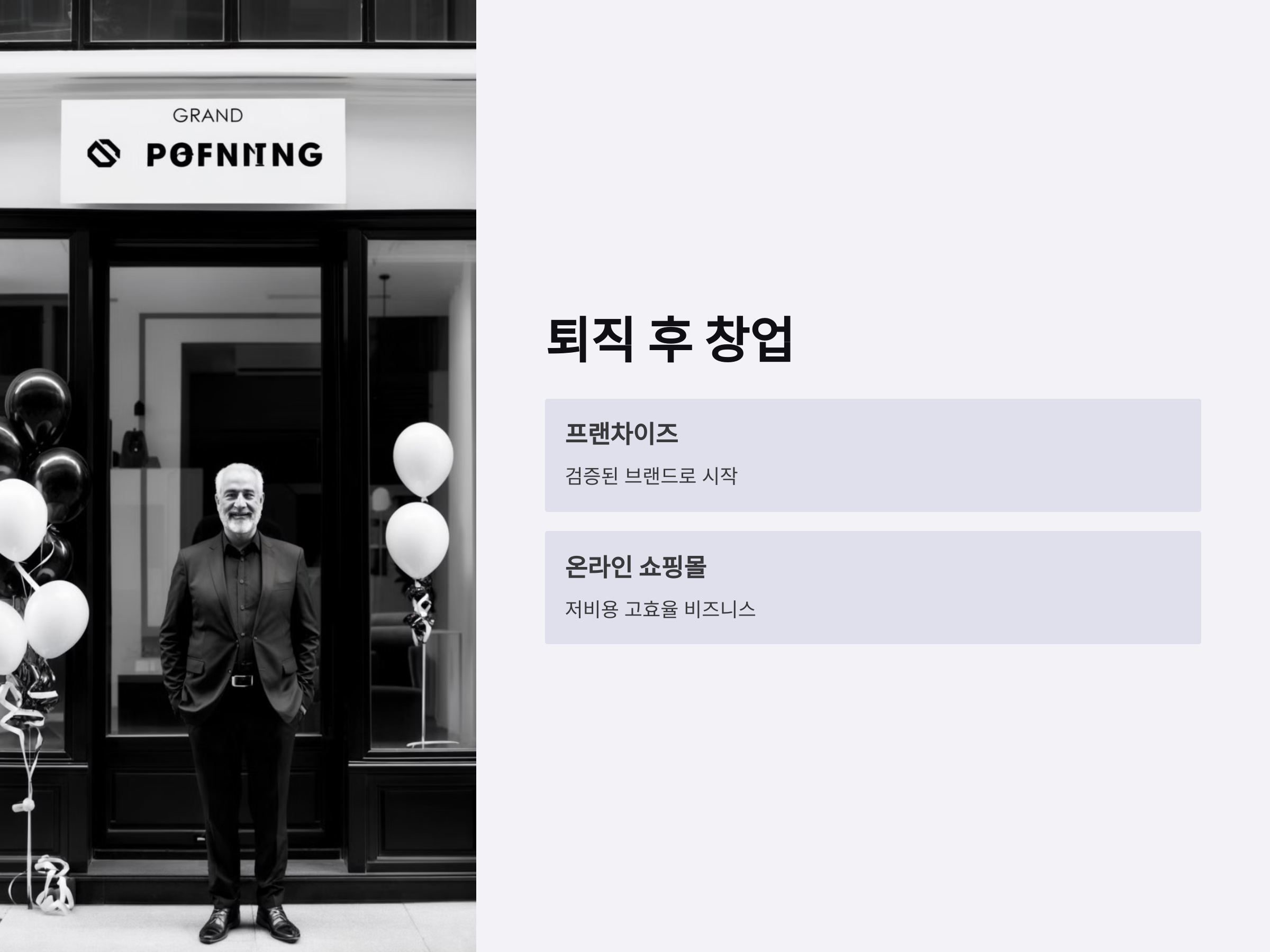 퇴직 후에는 창업을 통해 새로운 길을 시작하는 것도 하나의 방법입니다. 창업은 리스크가 따르지만, 적절한 아이템과 전략이 있다면 안정적인 수익을 창출할 수 있습니다.