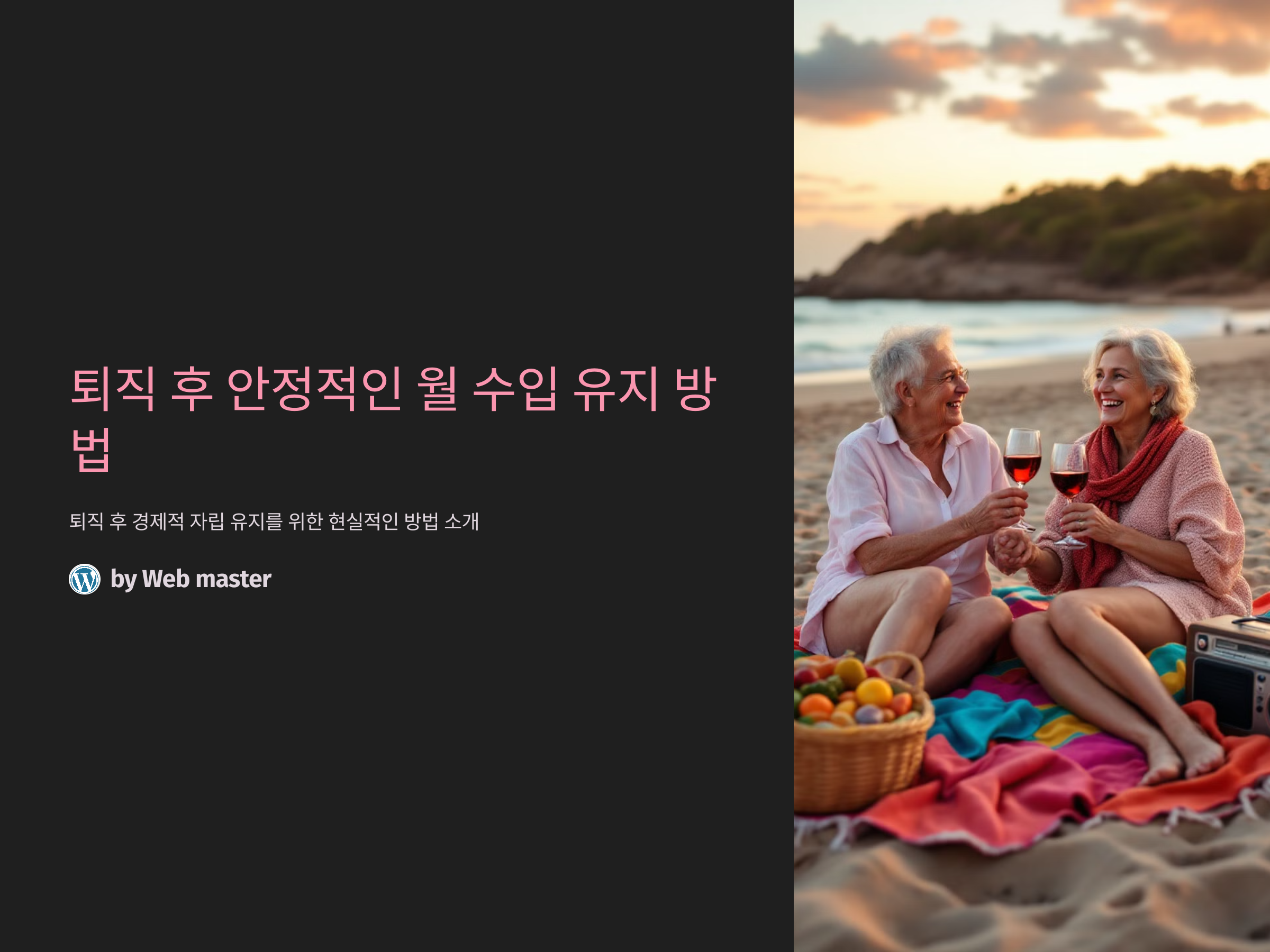 퇴직 후 안정적인 월 수입을 유지하는 방법에 대한 고민은 많은 사람들이 공감하는 문제입니다. 은퇴 후에도 경제적 자립을 유지하려면 무엇을 해야 할지 몰라 막막한 분들을 위해, 지금 당장 시작할 수 있는 현실적인 방법을 소개합니다. 퇴직 후 안정적인 월 수입을 유지하는 방법을 찾는 데 필요한 핵심 전략들을 함께 살펴보겠습니다. 이를 통해 당신도 안정적인 노후 생활을 준비할 수 있습니다.