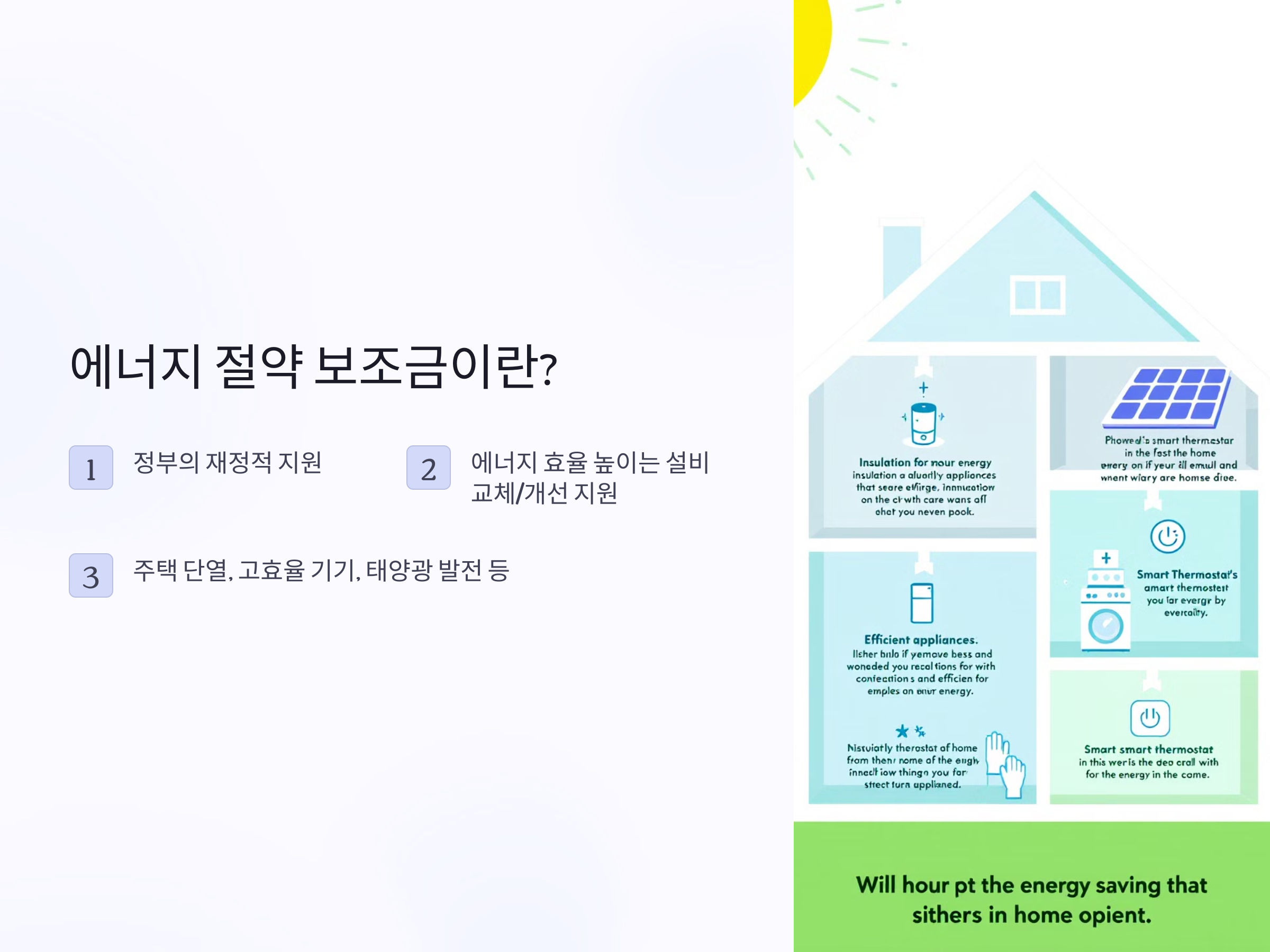에너지 절약 보조금은 정부가 국민들의 에너지 소비를 효율적으로 관리하고, 환경 보호를 촉진하기 위해 제공하는 재정적 지원입니다. 주로 주택이나 상업용 건물의 에너지 효율을 높이기 위한 설비 교체나 개선 작업을 지원하는데요, 퇴직 후 수입이 줄어든 경우, 이러한 보조금을 통해 에너지 비용을 줄이는 것이 큰 도움이 될 수 있습니다.