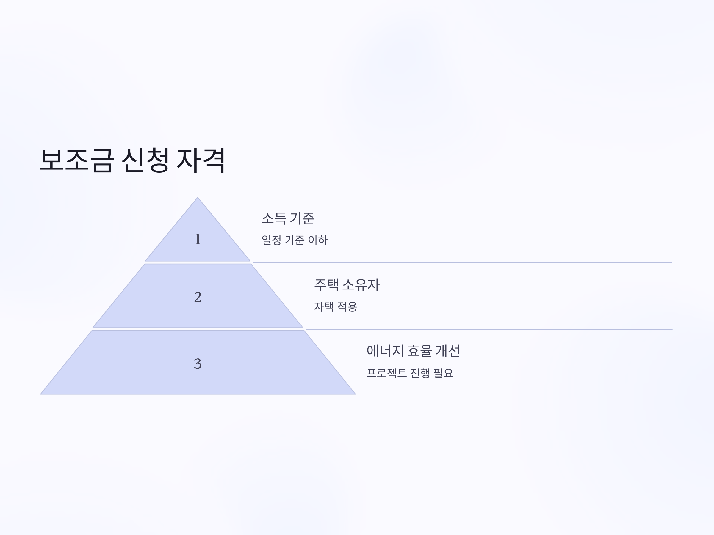 - 주택 소유자: 보조금은 주로 자택에 적용됩니다. 만약 전세나 월세에서 살고 있다면 일부 보조금은 신청이 불가능할 수 있습니다. 하지만 주택을 소유하고 있거나 공동 소유인 경우, 신청 자격이 주어집니다.