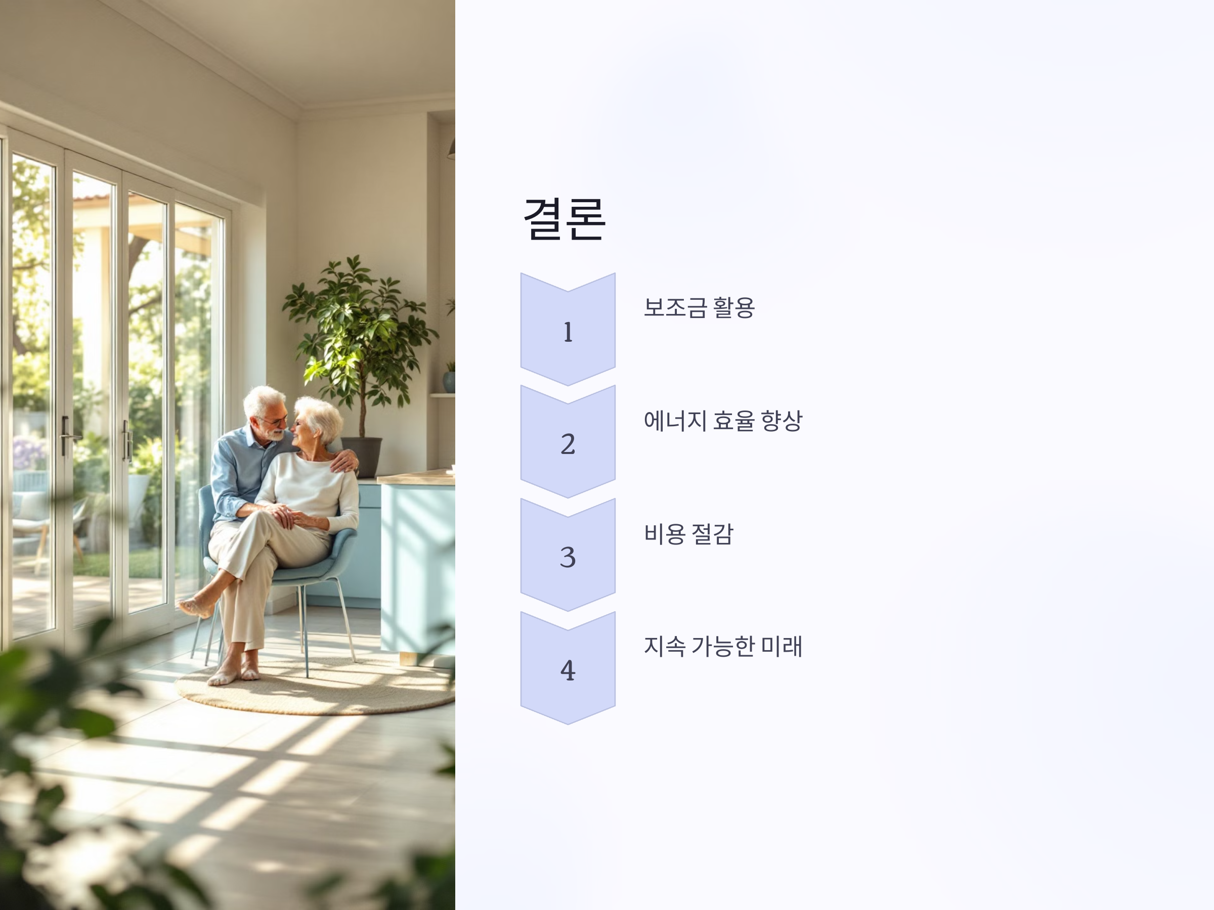 퇴직 후 경제적 안정을 위해 에너지 절약은 매우 중요한 방법 중 하나입니다. 정부의 보조금을 잘 활용하면, 초기 비용 부담을 줄이면서도 장기적인 에너지 비용을 절감할 수 있습니다. 여러분의 생활에 큰 도움이 될 수 있는 기회를 놓치지 마세요.