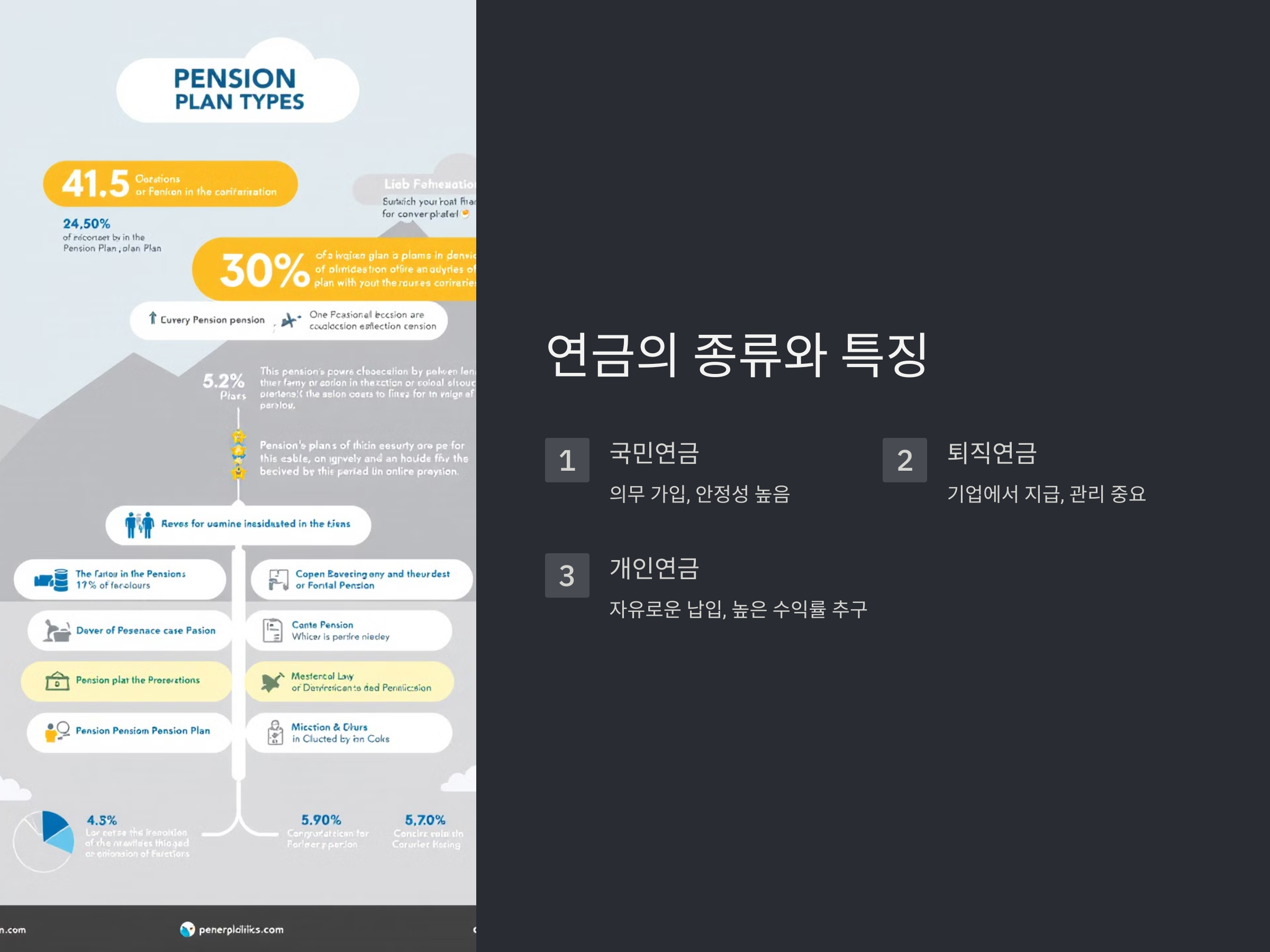 국민연금은 대한민국의 모든 근로자와 자영업자에게 의무적으로 가입하는 연금 제도입니다. 퇴직 후에는 국민연금을 월별로 수령하게 되며, 그 금액은 가입 기간과 납입액에 따라 달라집니다. 국민연금의 가장 큰 장점은 안정성입니다. 그러나 금액이 상대적으로 적기 때문에, 이를 보충할 다른 재정적 자원도 고려해야 합니다.