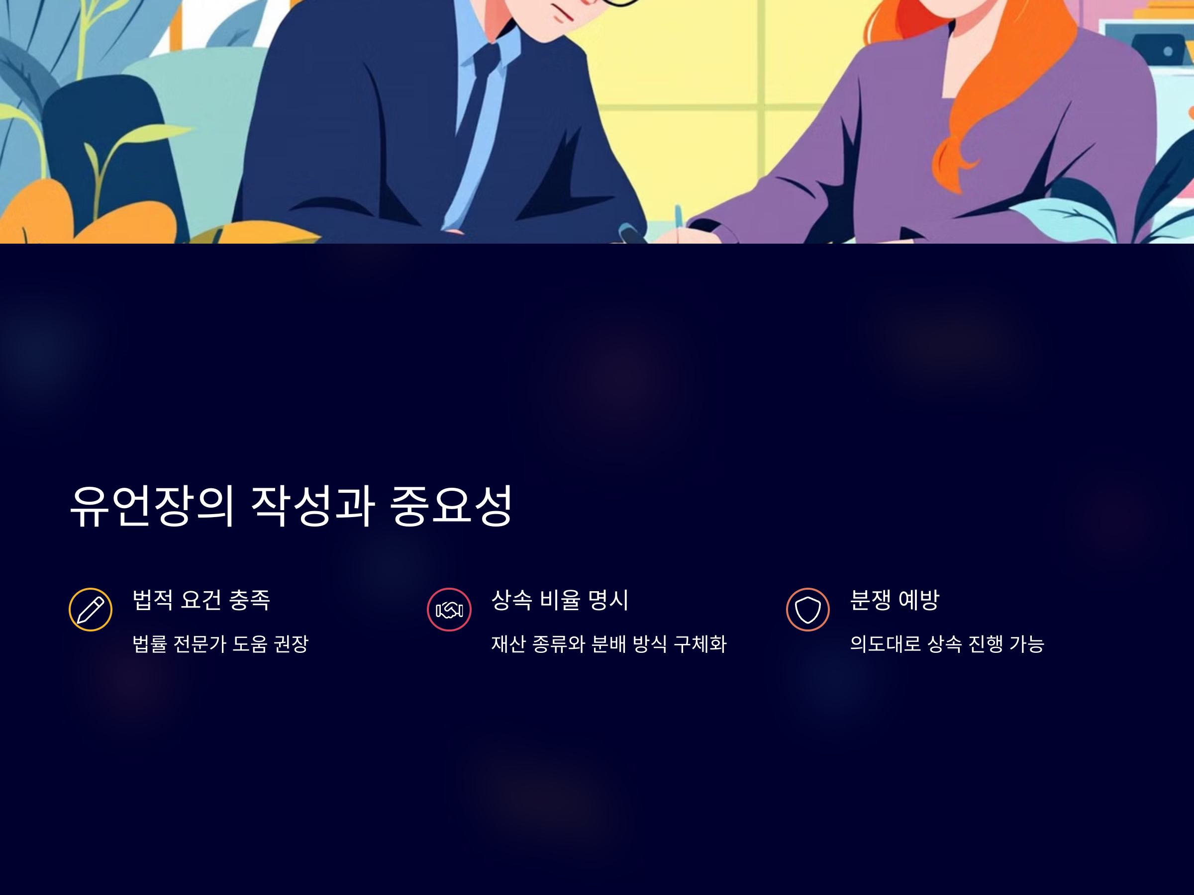 유언장 작성 시 고려해야 할 사항은 많습니다. 예를 들어, 유언장의 내용에 따라 상속 비율이나 상속받을 재산의 종류를 명확히 구분할 수 있습니다. 또한, 유언장을 통해 특정한 자산을 특정 상속인에게 지정하거나, 특정한 용도로 재산을 활용하도록 지시할 수 있습니다. 이처럼 유언장은 상속 분쟁을 예방하고, 의도대로 상속을 진행할 수 있게 도와줍니다.