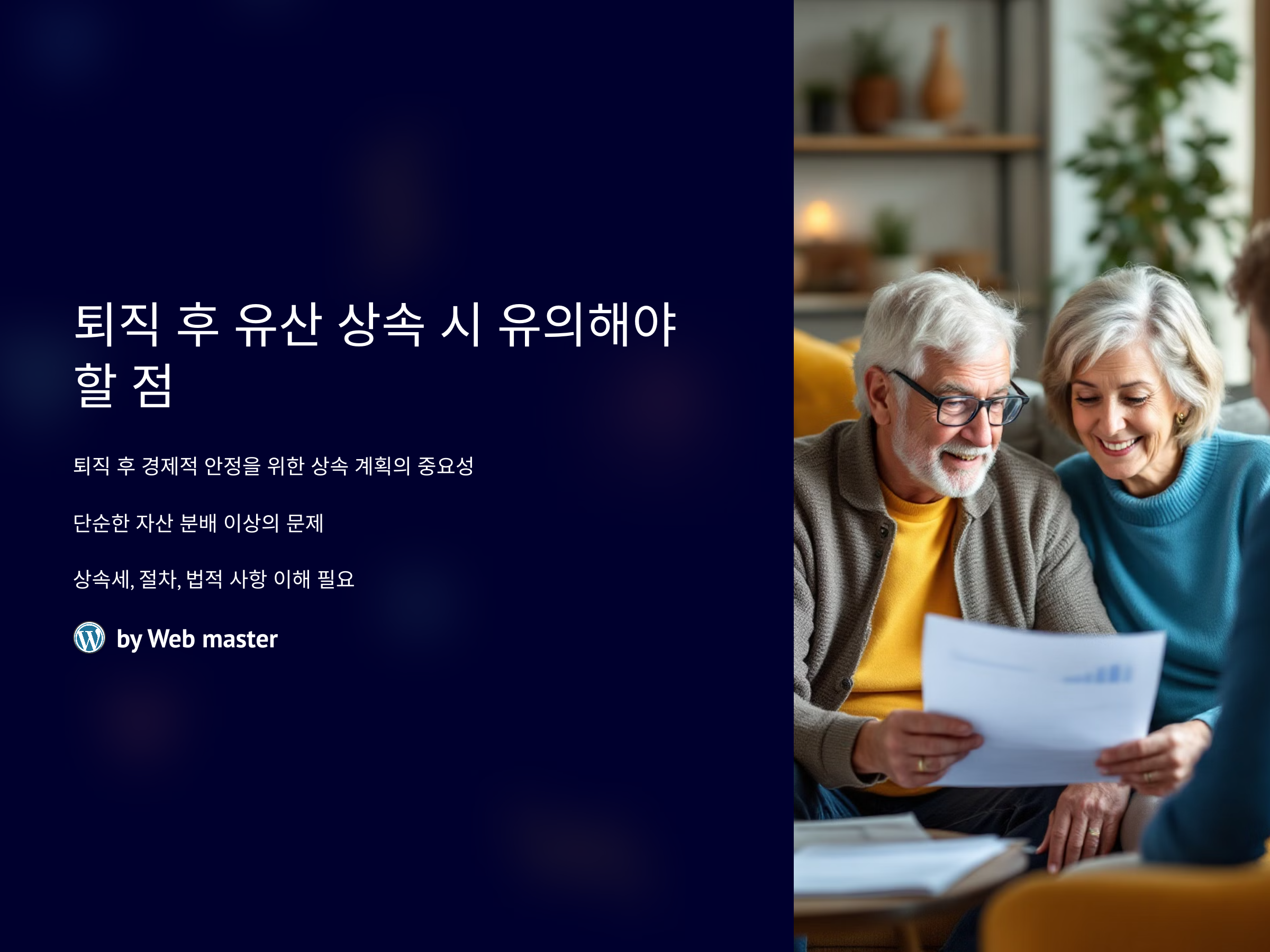 퇴직 후 유산 상속을 고려할 때 많은 사람들이 놓치는 중요한 점들이 있습니다. 퇴직 후의 경제적 안정을 위해서는 상속에 대한 사전 계획이 필수적이며, 이는 단순히 자산을 어떻게 분배할 것인지에 관한 문제만은 아닙니다. 상속세, 상속절차, 그리고 법적인 사항까지도 잘 이해하고 준비하는 것이 중요합니다. 이 글에서는 퇴직 후 유산 상속 시 유의해야 할 주요 사항들을 다루어 보겠습니다.