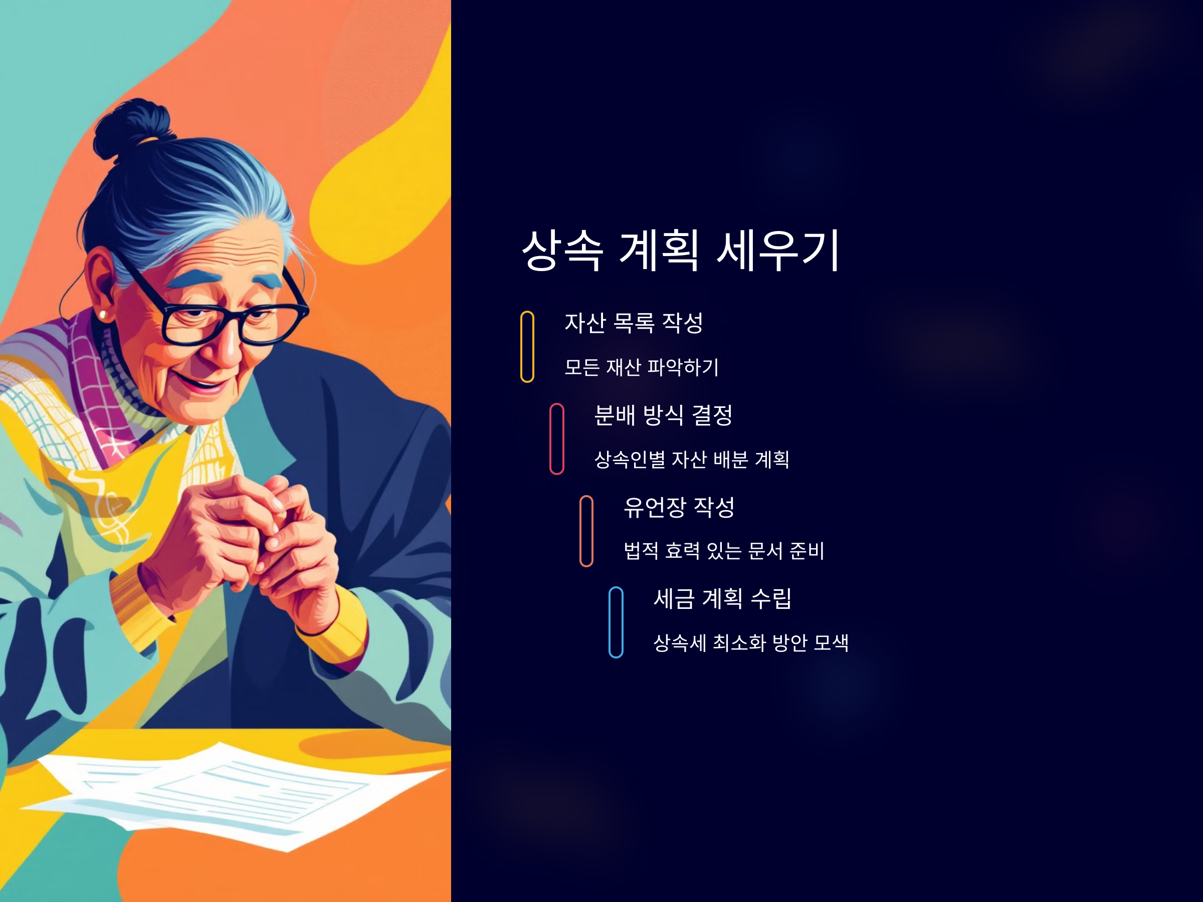 퇴직 후 유산 상속 시 가장 중요한 점은 상속 계획을 세우는 것입니다. 상속 계획은 상속을 받을 자산의 종류와 그 분배 방법을 미리 정해두는 과정을 말합니다. 이 과정을 통해 상속인의 의도를 분명히 하고, 상속 절차가 원활하게 진행될 수 있도록 돕습니다.