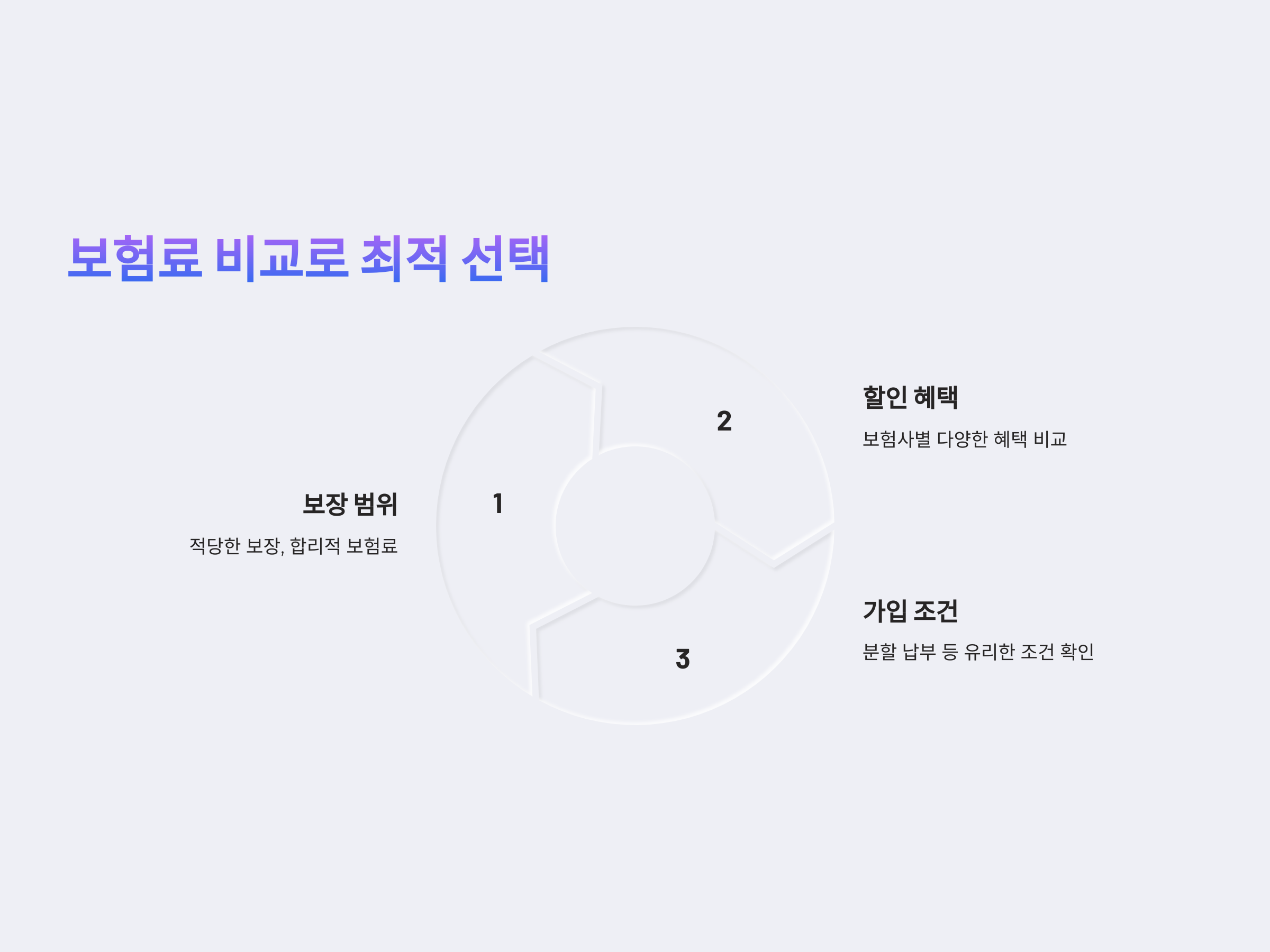 - 보장 범위: 보험료가 저렴하다고 해서 보장 범위가 적은 상품을 선택하는 것은 바람직하지 않습니다. 보장 범위가 적당하면서도 보험료가 합리적인 상품을 선택해야 합니다.