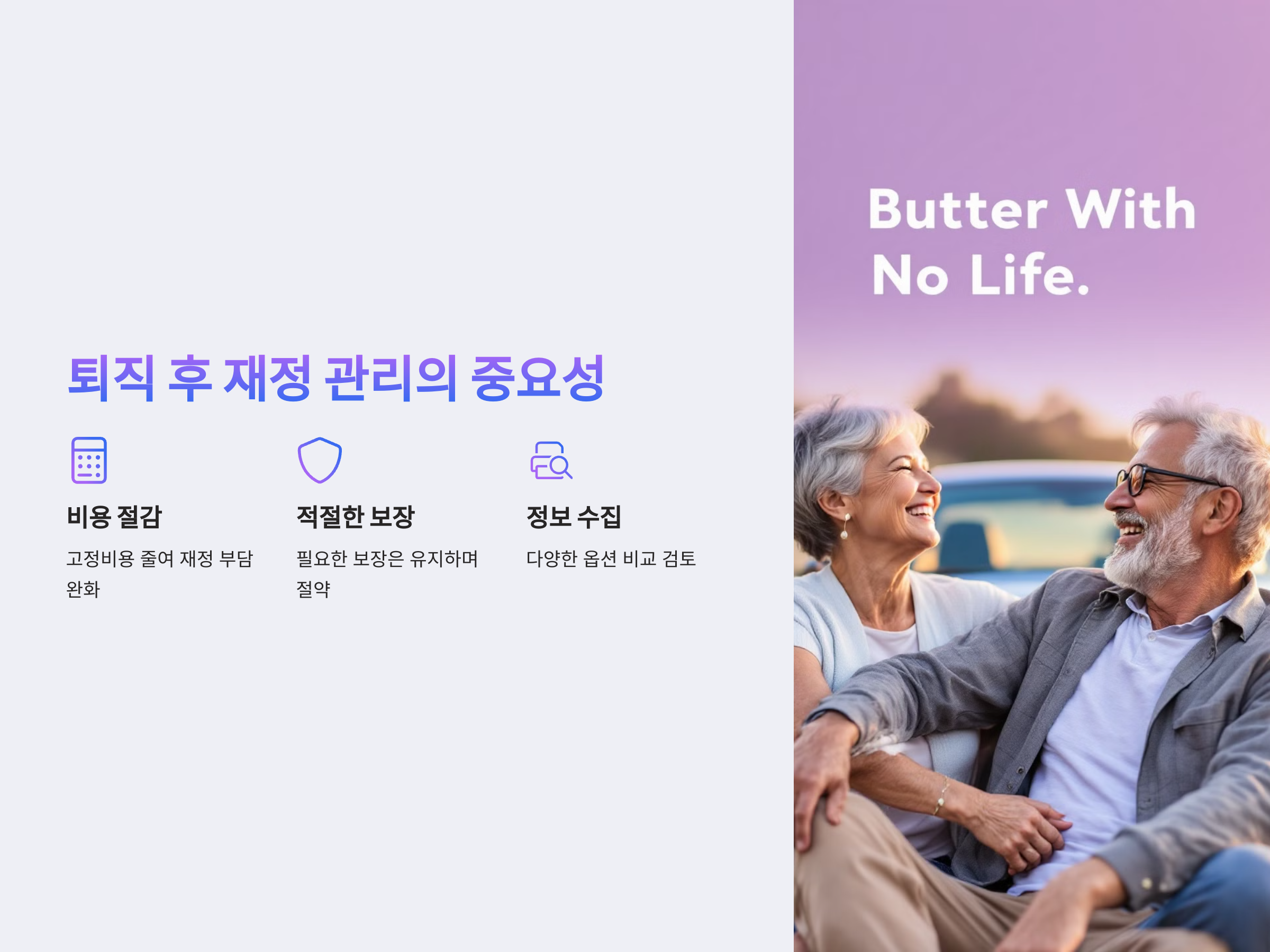 - 가입 조건: 퇴직 후에는 소득이 감소하기 때문에, 보험료가 매달 부담되지 않도록 유리한 조건을 찾아보는 것이 중요합니다. 분할 납부 등의 옵션을 제공하는 보험사도 있으니, 이를 고려해 선택하는 것이 좋습니다.