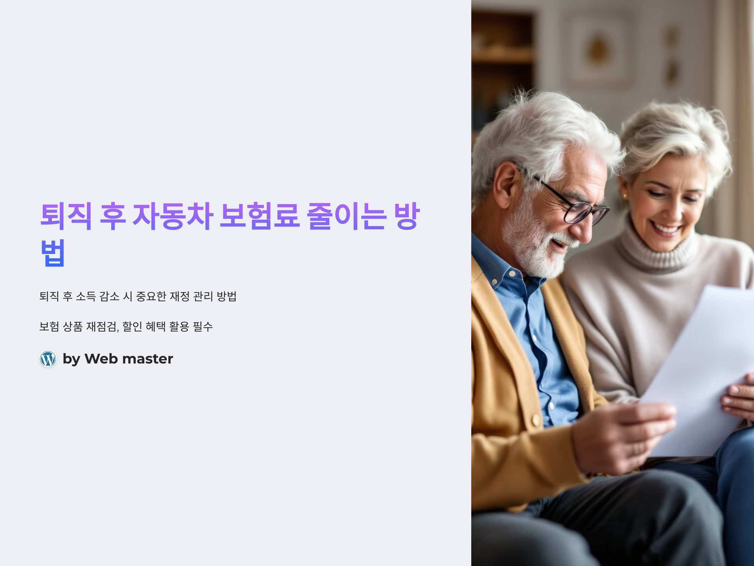 퇴직 후 자동차 보험료를 줄이는 방법에는 다양한 전략이 있습니다. 운전 빈도와 차량 사용 패턴을 잘 파악하고, 할인 혜택을 활용하며, 여러 보험사를 비교하여 최적의 보험 상품을 선택하는 것이 중요합니다. 또한, 계약 갱신 시점을 잘 활용하여 보험료를 재조정하는 것도 큰 도움이 됩니다. 퇴직 후 경제적 부담을 줄이기 위해 자동차 보험료 절감 전략을 잘 활용하세요.