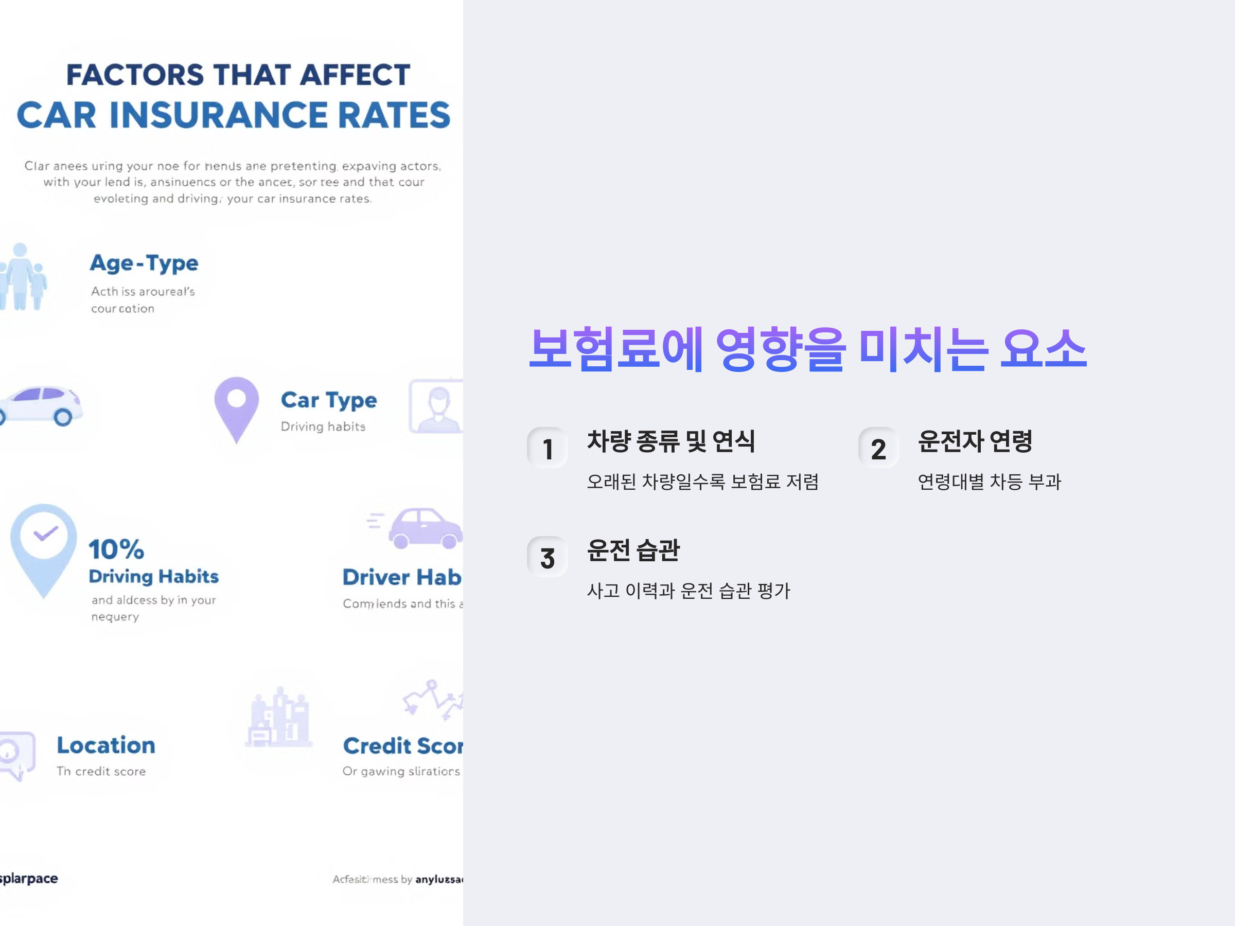 - 차량의 종류 및 연식: 오래된 차량일수록 보험료가 저렴해지는 경향이 있습니다. 새로운 차일수록 높은 보험료를 부과하는 경향이 있습니다.