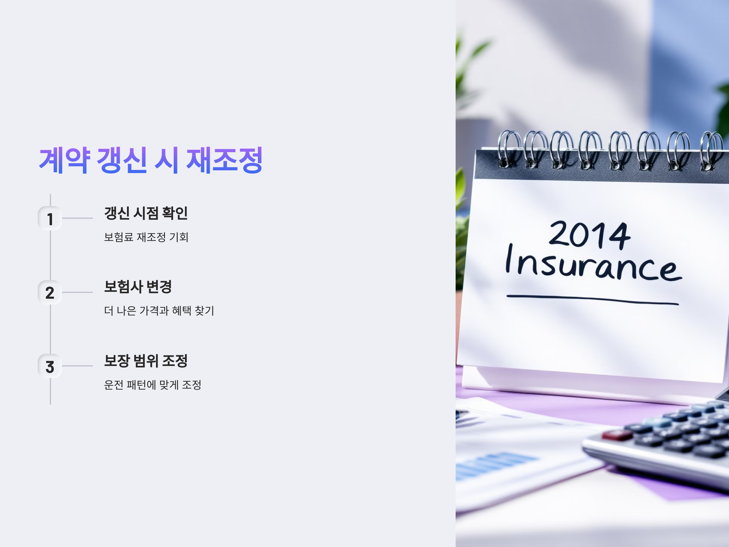 퇴직 후, 기존에 가입한 자동차 보험의 계약 갱신 시점을 맞이하면, 보험료를 재조정하는 기회가 됩니다. 기존의 보험이 과도하게 비쌀 경우, 갱신을 기회로 다른 보험사로 변경하거나 보장 범위를 조정할 수 있습니다. 계약 갱신 시, 새로운 보험 상품과 비교하여 더 나은 조건으로 변경할 수 있는 기회를 놓치지 말아야 합니다.
