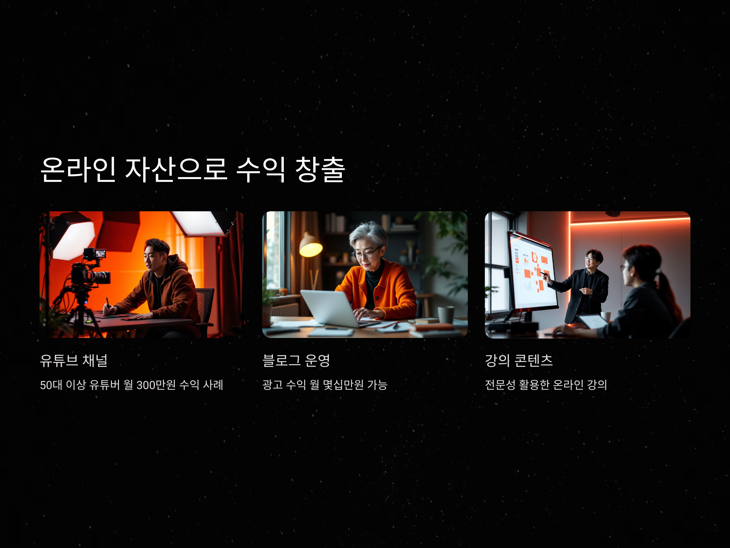 디지털 시대의 은퇴자는 단순한 소비자가 아닌 ‘콘텐츠 창작자’로도 활동할 수 있습니다. 블로그 운영, 유튜브 채널 개설, 강의 콘텐츠 제작 등은 퇴직자의 풍부한 경험과 전문성을 활용할 수 있는 좋은 기회입니다. 실제로 50대 이상 유튜버의 수익이 월 300만 원 이상이라는 사례도 속속 등장하고 있습니다.