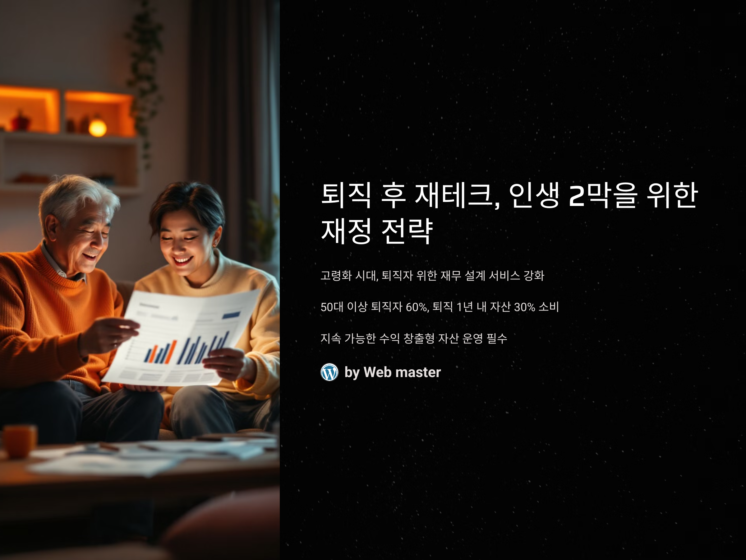 퇴직 후에는 단기 현금 흐름 확보가 중요하며, 동시에 중장기적인 투자 전략으로 안정적인 수익원을 확보해야 합니다. 이에 따라 월 배당 ETF, 배당주 투자, 임대 수익 부동산, 온라인 자산활용 등의 전략이 재조명되고 있습니다. 이 글에서는 퇴직 후 재테크의 실질적인 시작 방법부터 각 전략의 장단점, 최신 트렌드까지 심도 있게 다루며, 인생 2막의 성공적인 재무 설계를 돕고자 합니다.