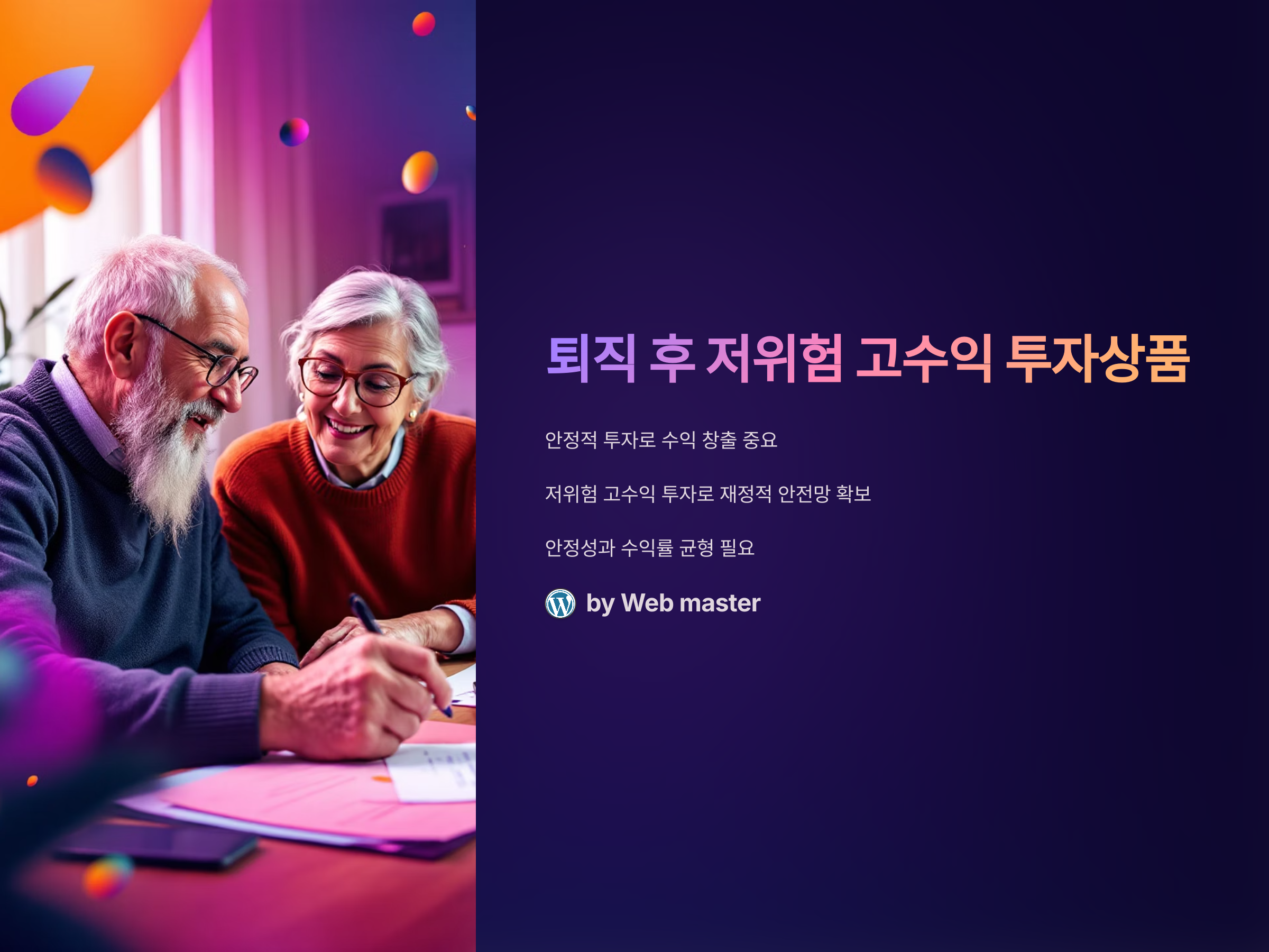 투자 전 반드시 전문가의 상담을 받는 것도 좋은 방법이며, 퇴직 후에도 재정적인 안정성을 확보할 수 있는 전략을 세우는 것이 중요합니다. 저위험 고수익 투자상품을 통해 더 나은 재정적 미래를 설계해보세요!