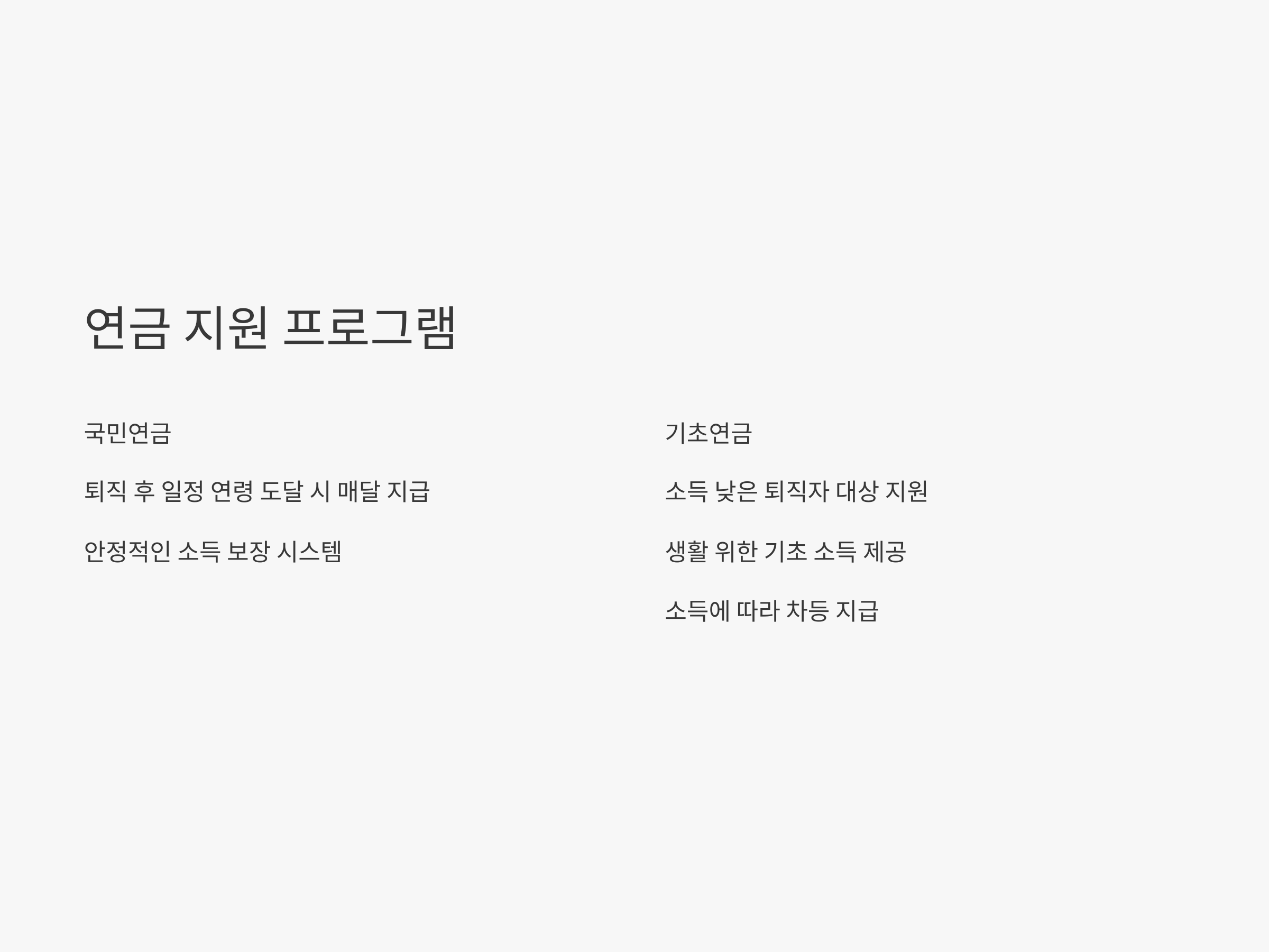 퇴직 후 안정적인 생활을 위해 가장 중요한 것은 연금입니다. 정부에서는 퇴직자를 위한 다양한 연금 지원 프로그램을 제공합니다. 대표적인 것이 '국민연금'과 '기초연금'입니다. 국민연금은 퇴직 후 일정 연령에 도달하면 매달 일정 금액을 지급받을 수 있는 시스템으로, 이를 통해 퇴직 후 안정적인 소득을 보장받을 수 있습니다.
