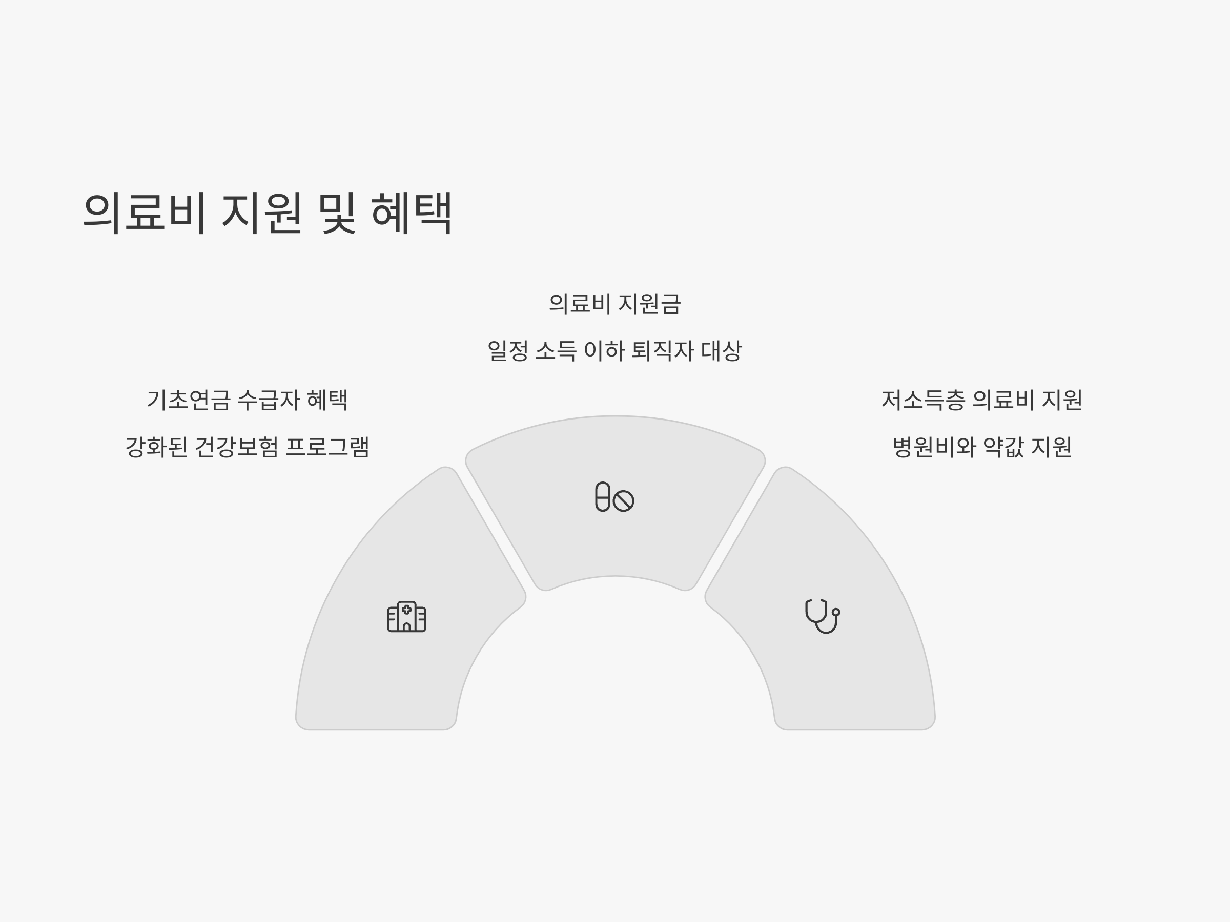 건강보험에서 제공하는 혜택 외에도 ‘저소득층 의료비 지원’ 프로그램도 있습니다. 이 지원은 퇴직 후 생활이 어려운 저소득층을 대상으로 하며, 병원비와 약값 등을 지원합니다. 퇴직 후 노후 건강을 지키는 데 필요한 비용을 덜어주어 건강한 생활을 유지하는 데 중요한 역할을 합니다.