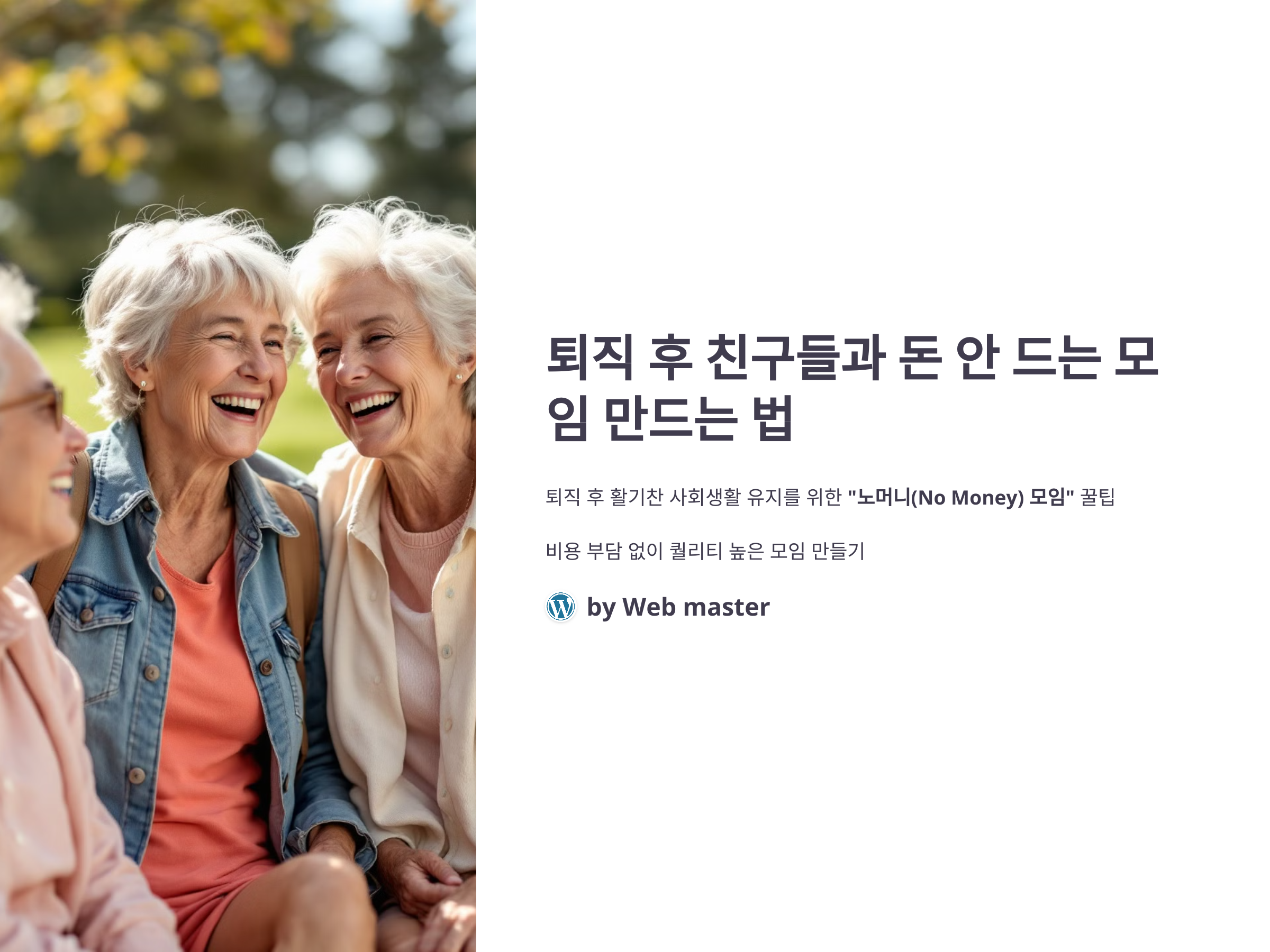 퇴직 후에도 활기찬 사회생활을 유지하려면 친구들과의 모임이 중요합니다. 하지만 매번 비용이 들면 부담될 수밖에 없죠. 최근 "노머니(No Money) 모임"이 인기를 끌면서, 무료로 즐길 수 있는 다양한 모임 형태가 주목받고 있습니다. 비용 부담 없이도 퀄리티 높은 모임을 만들 수 있는 현실적인 방법과 꿀팁을 소개합니다.