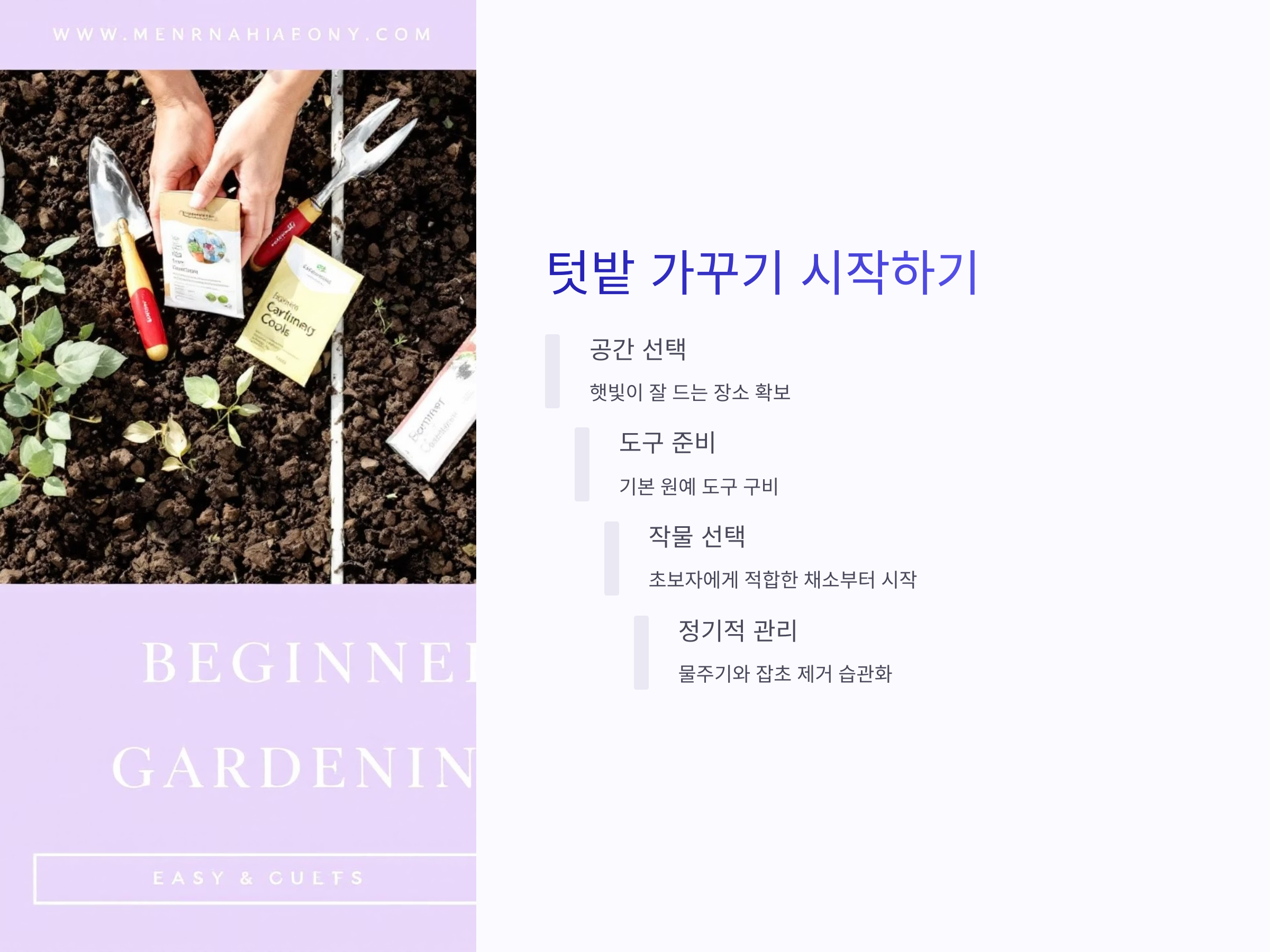 더 나아가, 텃밭을 가꾸는 것은 자연과의 협력을 배울 수 있는 중요한 기회입니다. 농작물의 생장을 관찰하며 자연의 법칙에 대해 이해하고, 이를 존중하는 태도를 기를 수 있습니다. 이러한 경험은 삶의 질을 높이고, 더 나은 인생을 위한 발판이 됩니다.