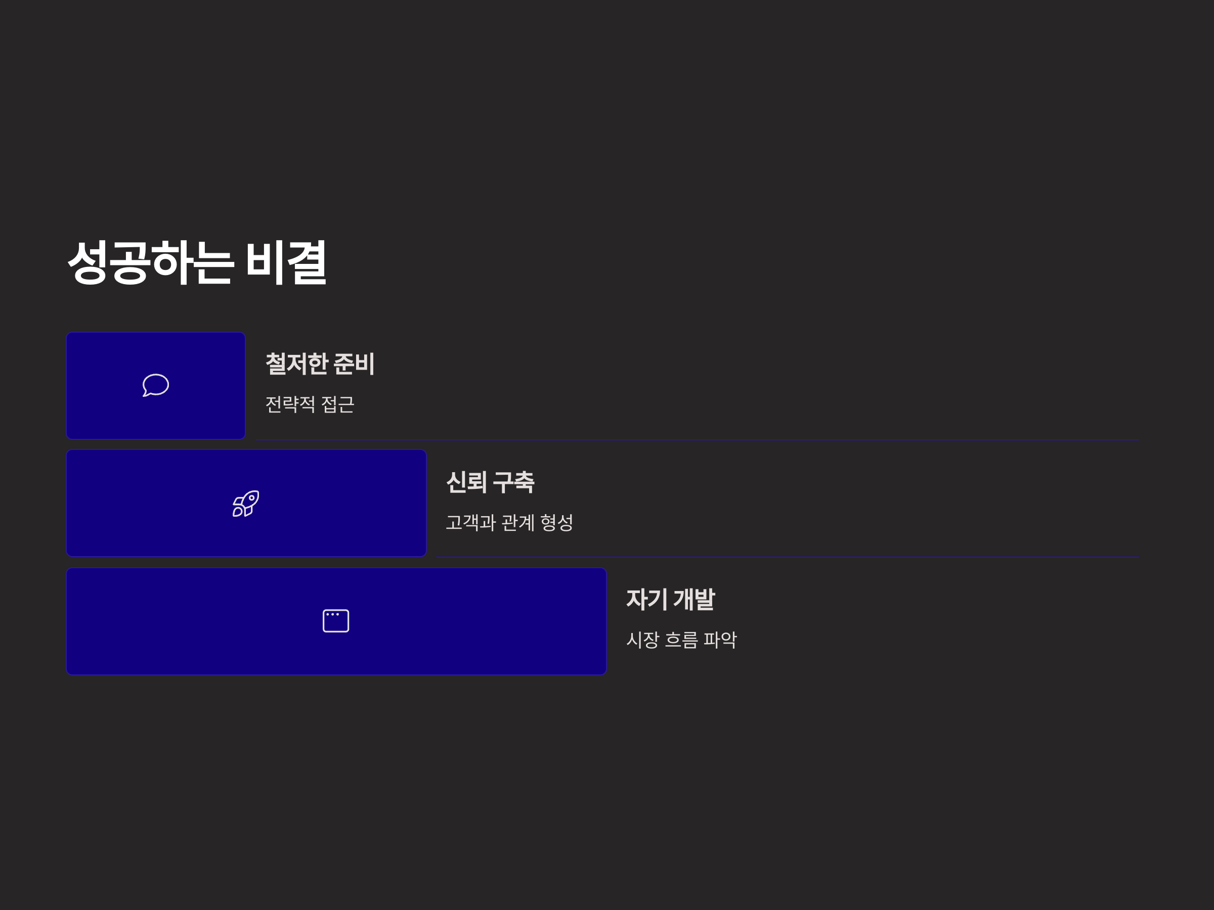 프리랜서로서 중요한 또 하나의 요소는 일의 품질입니다. 고정된 월급을 받는 직장인과 달리, 프리랜서는 품질을 기반으로 평가받습니다. 고객이 만족하지 못하면 재계약이 어려워지기 때문에, 품질을 꾸준히 유지하고 개선하는 것이 필수적입니다. 이를 위해 계속해서 배우고, 트렌드를 따라가며 기술을 발전시키는 것이 중요합니다.