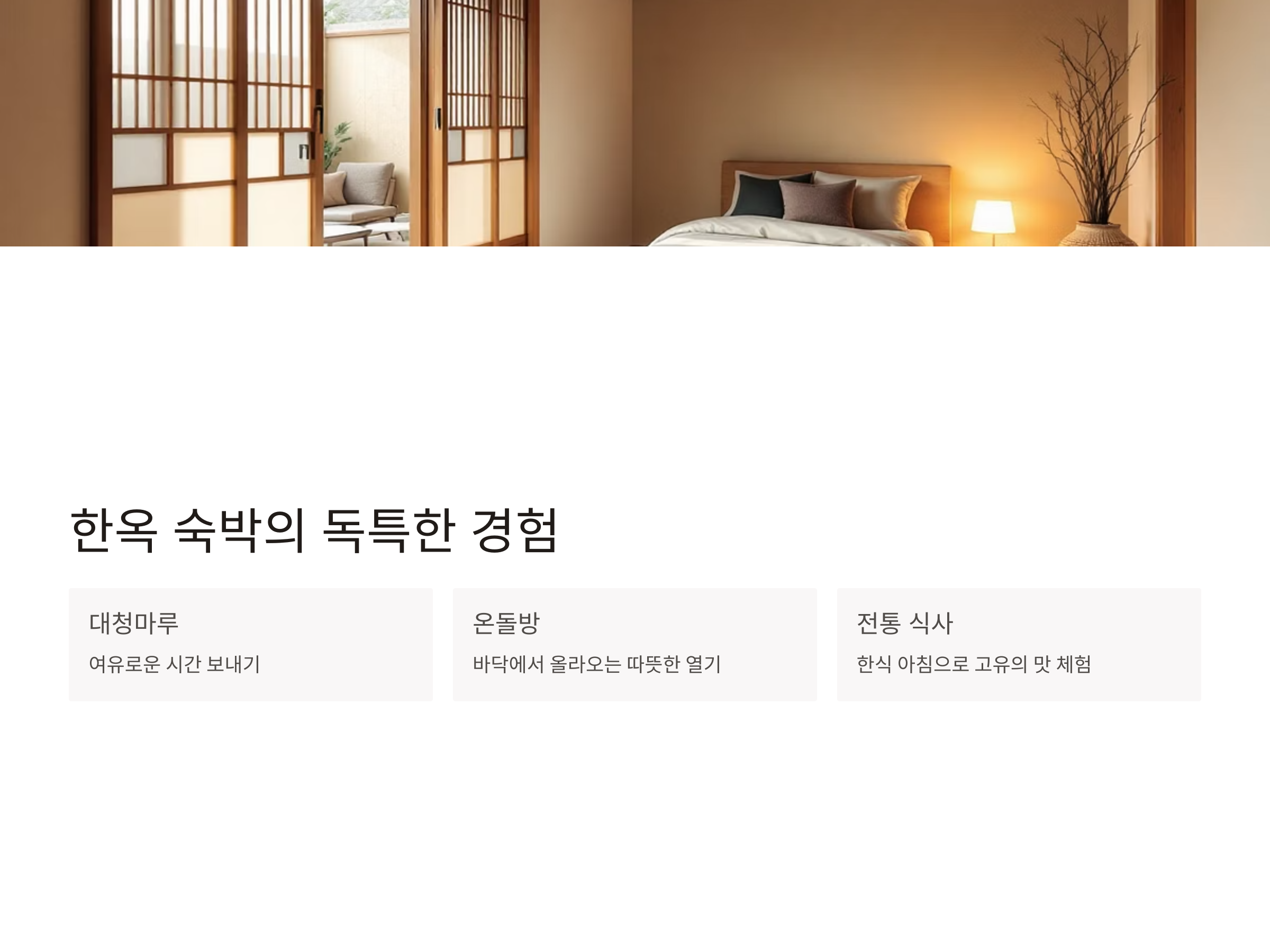 한옥에서의 숙박은 단순히 잠을 자는 것 이상의 경험을 제공합니다. 한옥은 집안 곳곳에서 한국 전통의 아름다움을 느낄 수 있게 해줍니다. 대청마루에서의 여유로운 시간, 온돌방에서의 따뜻한 잠자리, 작은 정원에서 자연을 느끼며 시간을 보내는 등, 한옥은 모든 순간을 특별하게 만들어줍니다.