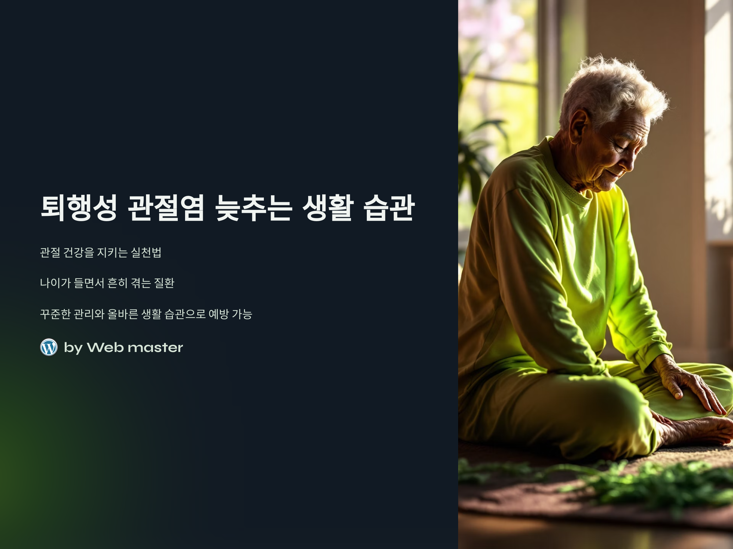 퇴행성 관절염은 나이가 들면서 흔히 겪게 되는 질환 중 하나입니다. 관절에 지속적인 스트레스가 가해지면 연골이 손상되고, 결국 관절 기능에 큰 영향을 미칩니다. 다행히도, 꾸준한 관리와 올바른 생활 습관으로 증상을 늦추고 예방할 수 있습니다. 이 글에서는 퇴행성 관절염을 늦추는 데 도움이 되는 생활 습관을 소개합니다. 작은 변화가 큰 차이를 만들 수 있다는 점을 기억하세요.
