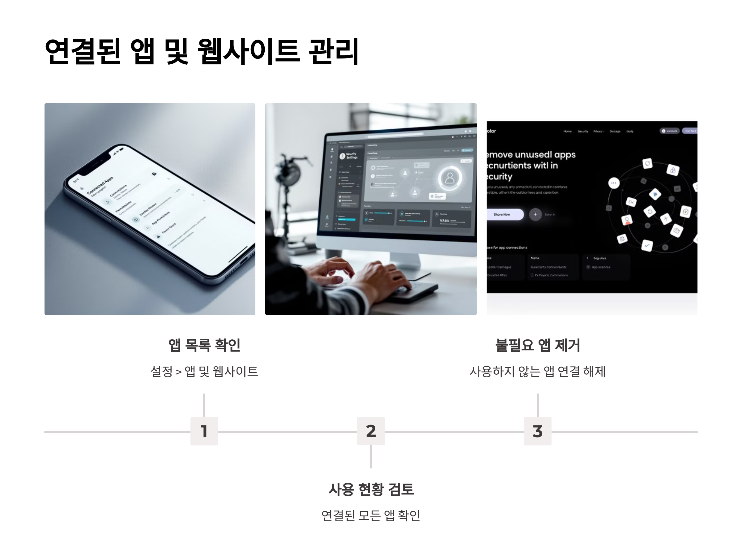 - 사용하지 않는 앱이나 웹사이트는 '삭제' 버튼을 눌러 연결을 끊습니다.
